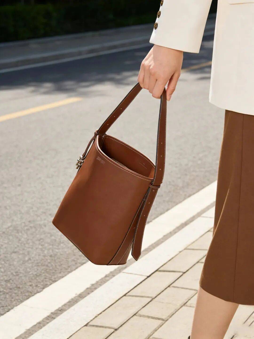 纯色围巾(咖色/格纹)增加暖感,避免花哨图案。