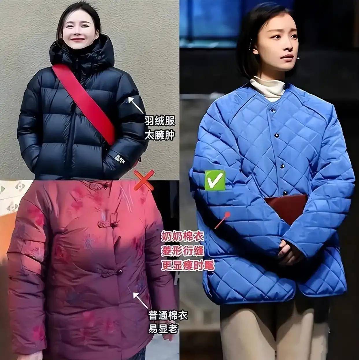金晨的棉服穿搭理念,以下是实现“显瘦、时髦、保暖”三大核心目标的实用指南,结合极简风格与实用技巧:
