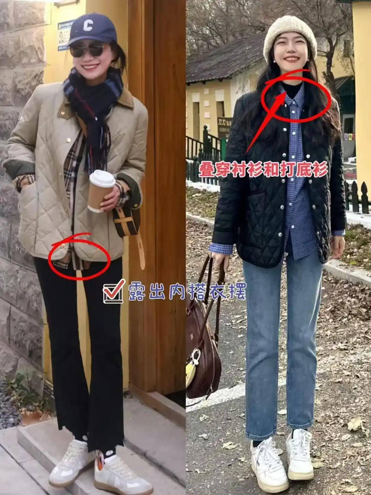长款棉服+厚底德训鞋/运动鞋:休闲减龄,金晨春晚彩排造型已验证。