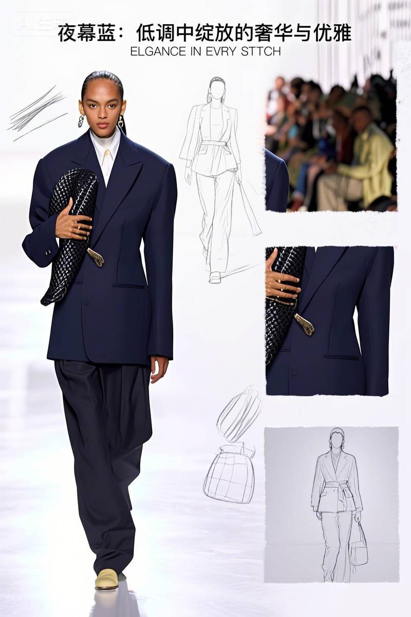 中性色调:以夜幕蓝、米白、浅灰等低饱和度颜色为主,强调“低调中显质感”(符合“静奢”风格的核心,如1 中提到的静奢大衣用中性色调诠释内敛奢华);