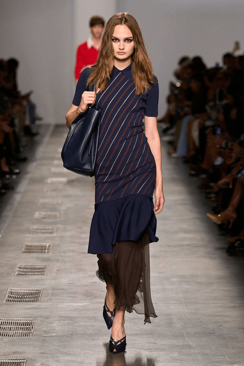 面料与功能革新:Burberry将双排扣、宽腰带等元素与新型面料结合,提升大衣的实用性;Ami 2025秋冬系列用皮革大衣、双排扣西装的锋利线条,将学院风的规整转化为都市女性的果敢气场。
