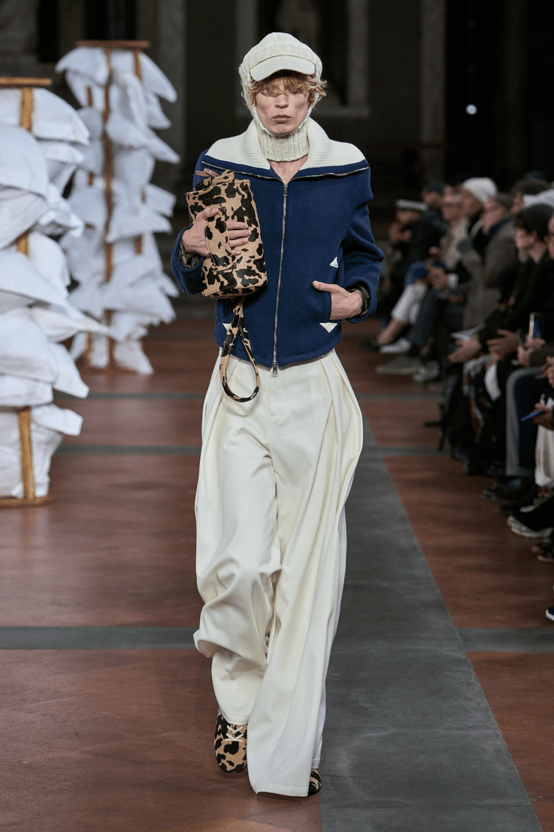 运动与绅士的融合:Thom Browne将英伦绅士风与网球元素结合,用对称剪裁、纯白配色打造高级时装感的Tennis-core,让运动装兼具优雅与结构感。