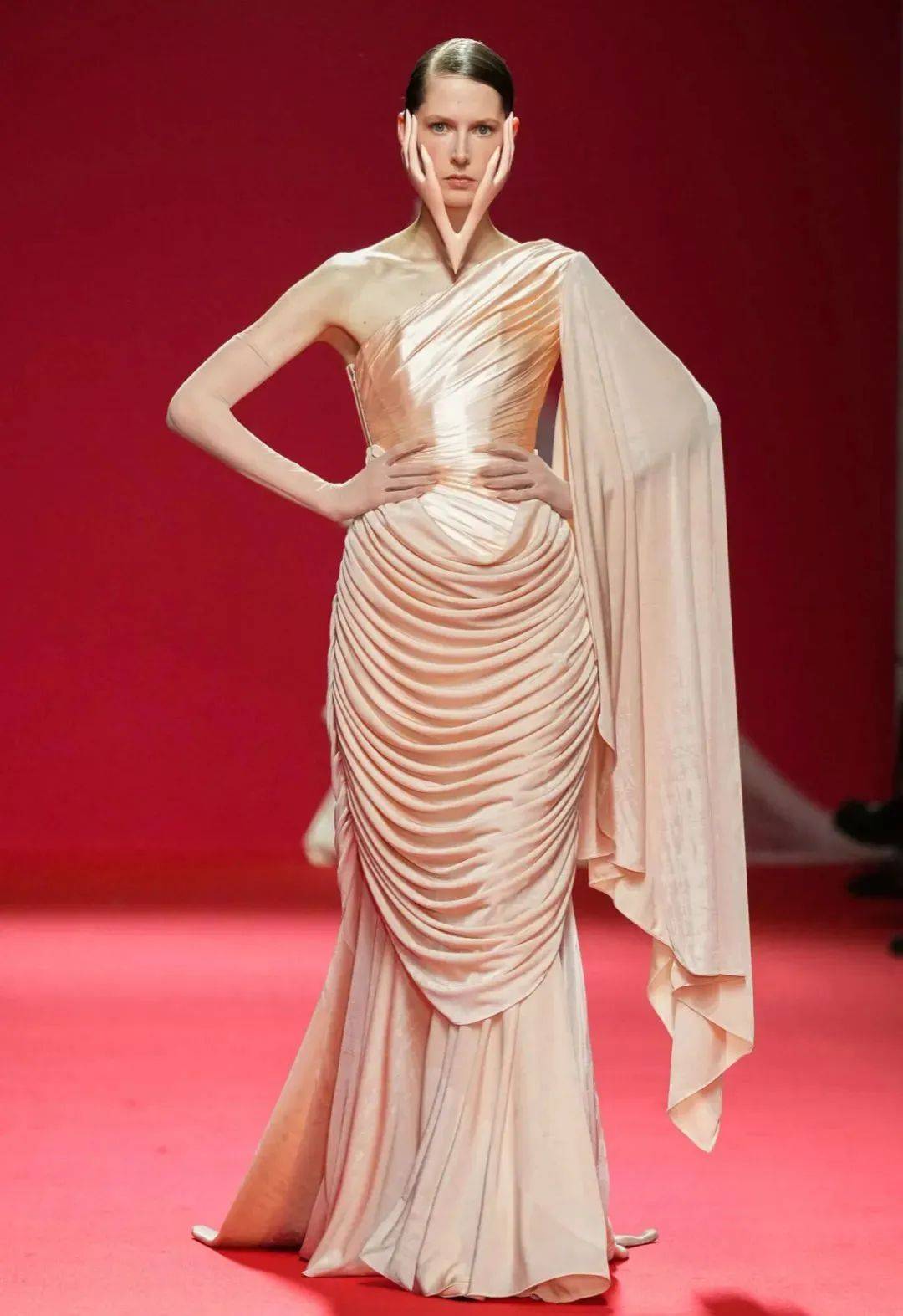 Robert Wun出生于香港,长于伦敦,2014年创立同名品牌,曾为Lisa、Lady Gaga等艺人提供服装支持。其设计擅长将恐惧与美丽融合,此次巴黎高定秀场上的“泣血新娘”系列,以白色婚纱为基底,密集镶嵌红色水晶,模拟喷溅而出的鲜血效果,营造出诡异而惊艳的视觉冲击,完美诠释了“中式恐怖美学”的独特魅力——用极致的视觉反差传递复杂情绪。