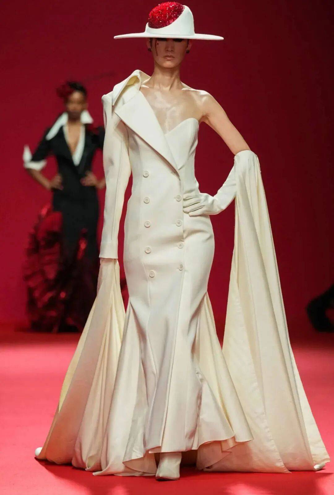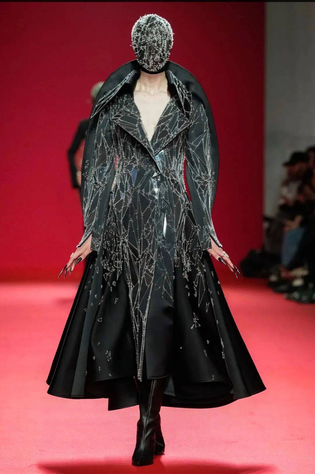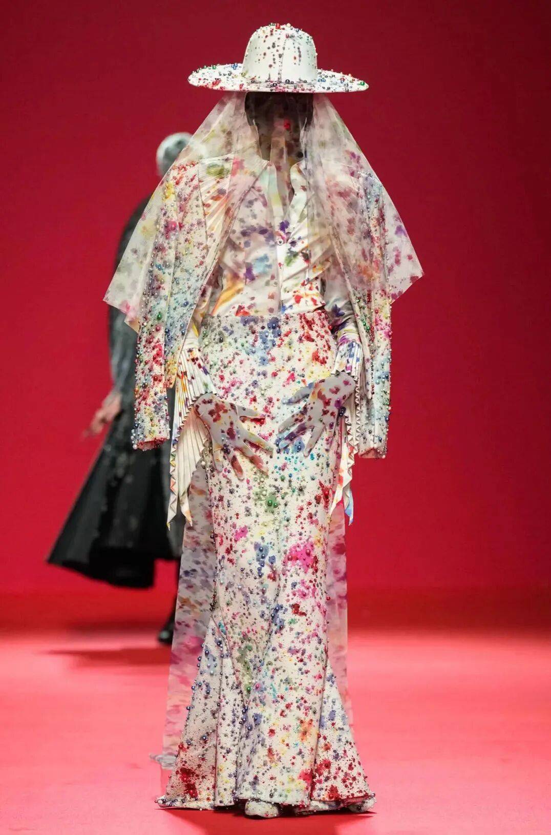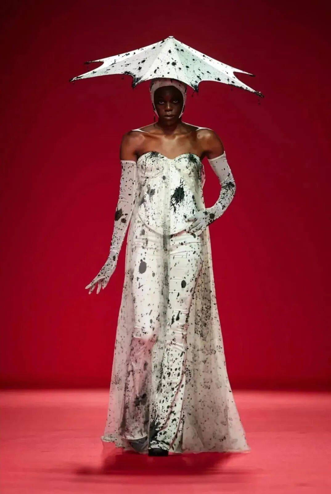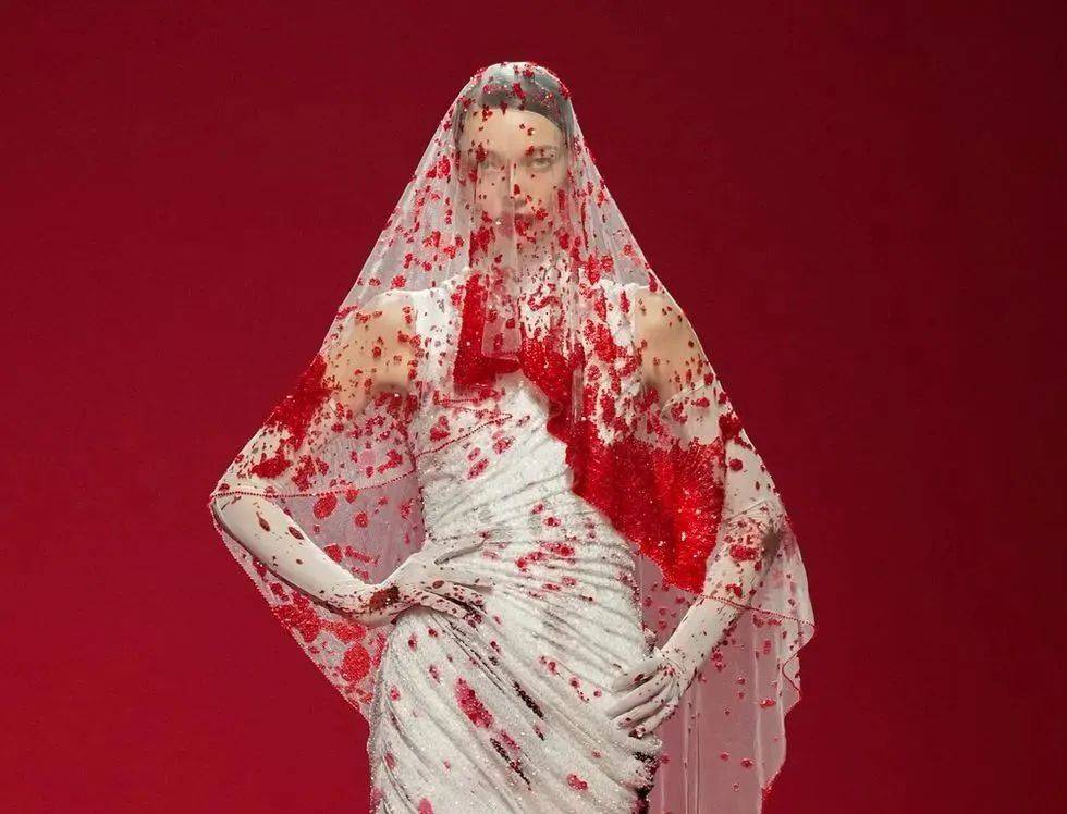 “泣血新娘”系列一经展示便引发轰动,外国人纷纷称赞其“有点东西”,认为这种融合了中式恐怖的时尚设计既独特又富有感染力,成功将中国文化中的“恐怖美学”推向国际舞台,成为巴黎时尚圈的焦点话题。