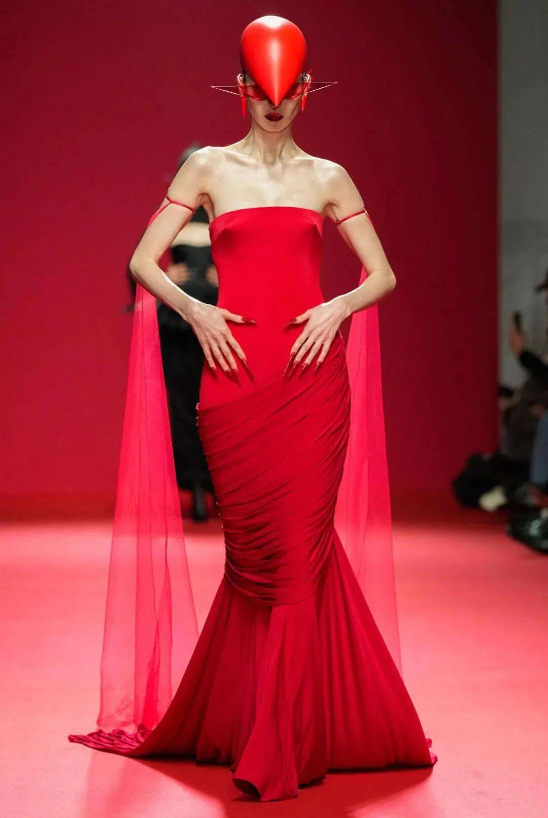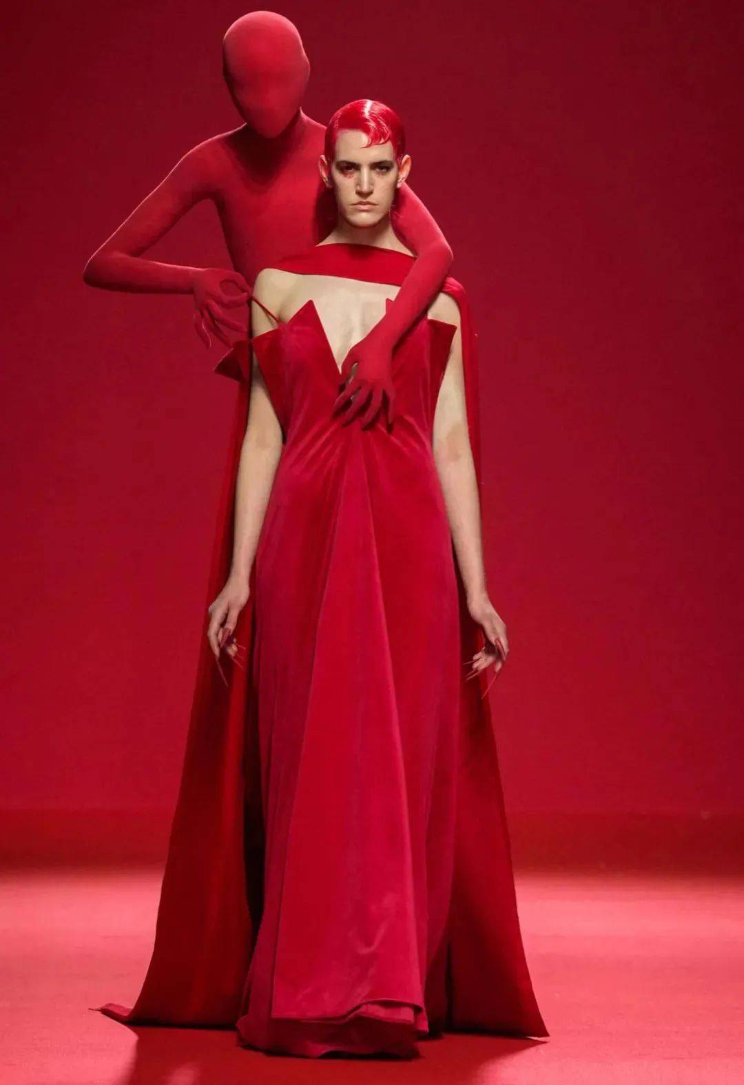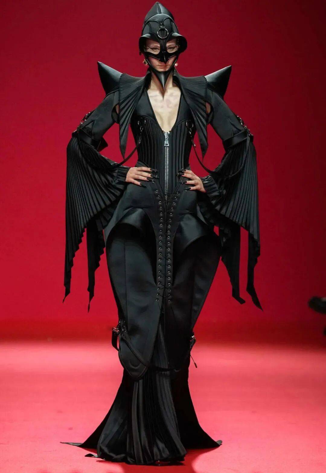该系列命名为“Bleeding Love(流血的爱)”,背后蕴含着设计师对爱与恐惧的探讨。他希望通过服装将恐惧转化为艺术,让观众在感受“恐怖”的同时,思考爱中的矛盾与深度。这种将传统文化中的“恐怖”元素(如鲜血、诡异氛围)与现代时尚结合的方式,打破了西方对“恐怖美学”的固有认知,让巴黎时尚圈见识到中国设计师的创新与文化底蕴。