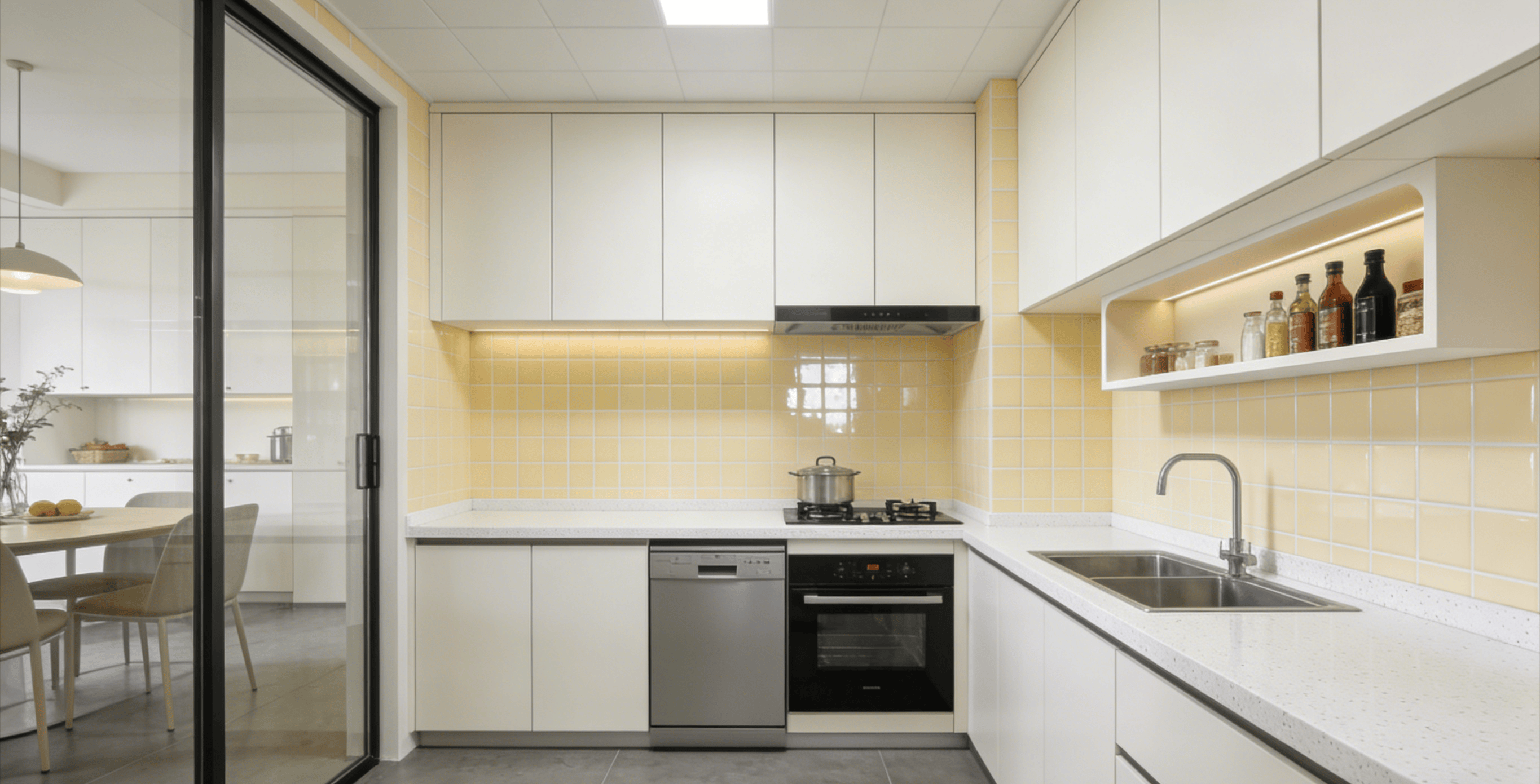清玻移门隔离油烟,保持通透感。