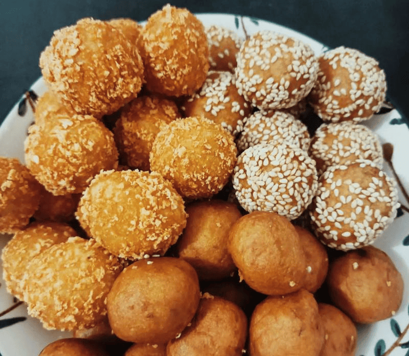 | 5. 红薯丸子 | 红薯+糯米粉+糖/椰蓉 | 油锅(油炸) | 外脆内Q,香甜弹牙 | 宴客甜品 / 节日小吃 |
