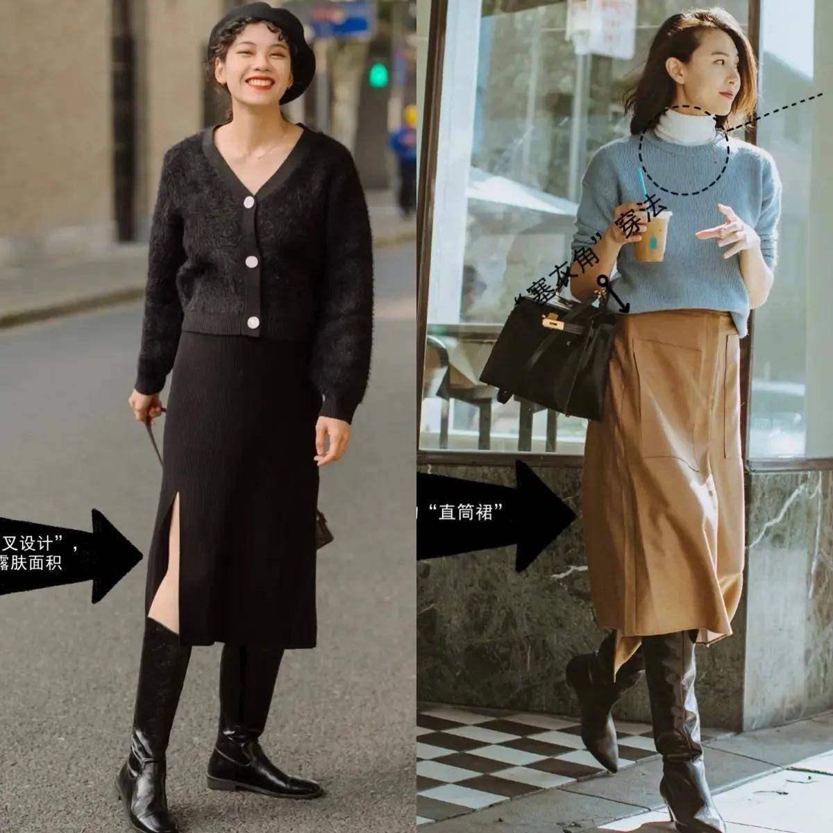 补充说明:裙装推荐选择针织连衣裙、高腰半身裙等材质厚实款式,搭配过膝靴进一步防风;长裤则建议选用微喇叭裤、直筒裤或无痕裤,优化腿型比例 。