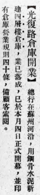 △ 交通银行仓库建成时的报道,引自1934年《交行通信》