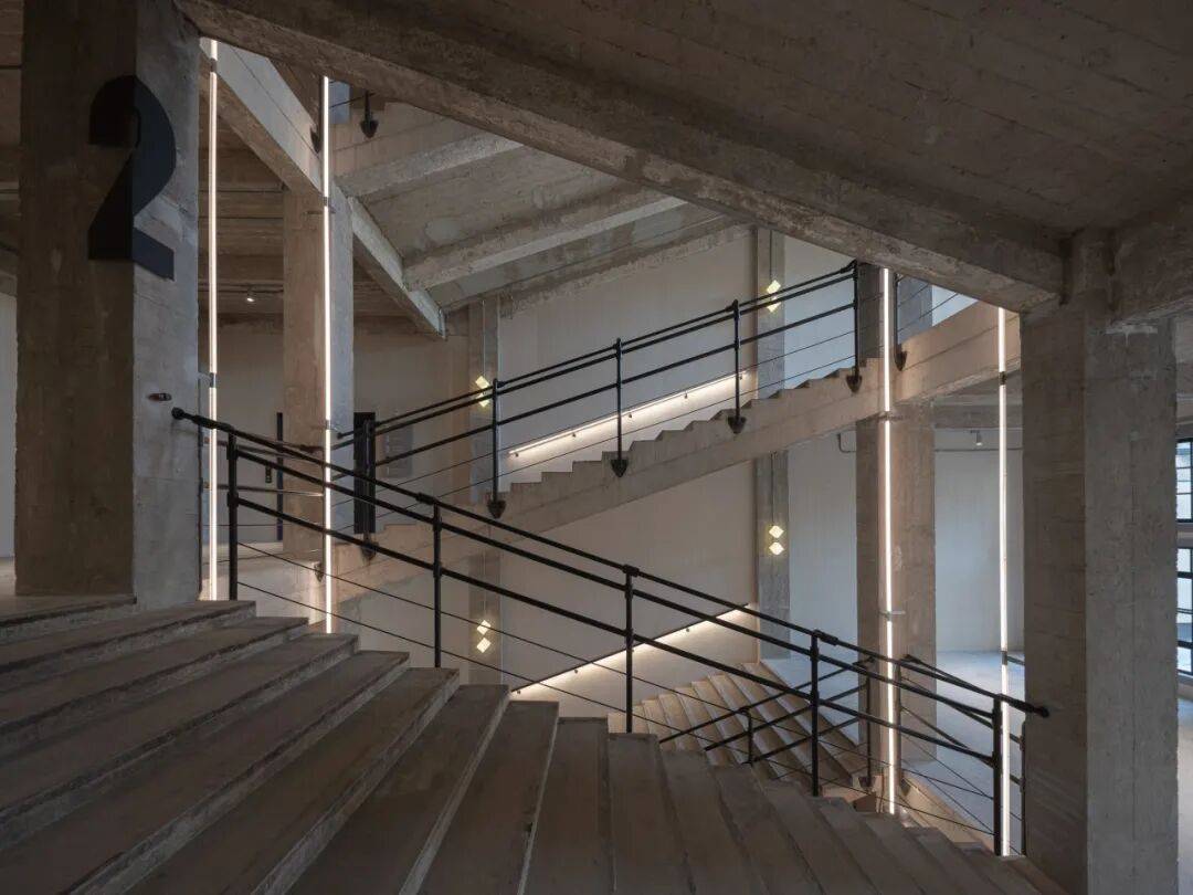 △ 修缮前后的缓步楼梯间,结合其历史特征,恢复并强化了楼梯间疏朗、通透的工业感氛围
