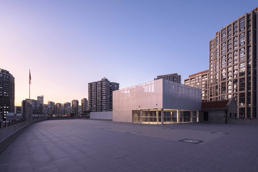 在建筑修缮中,采用“最小干预”原则,保留原有砖墙肌理、结构体系与空间尺度。通过现代材料如玻璃、耐候钢、再生混凝土进行局部加建或界面置换,形成新旧对话。例如,在立面处理上,以半透明金属网幕墙包裹部分区域,既增强现代感,又在光影变化中呈现“历史的朦胧感”。