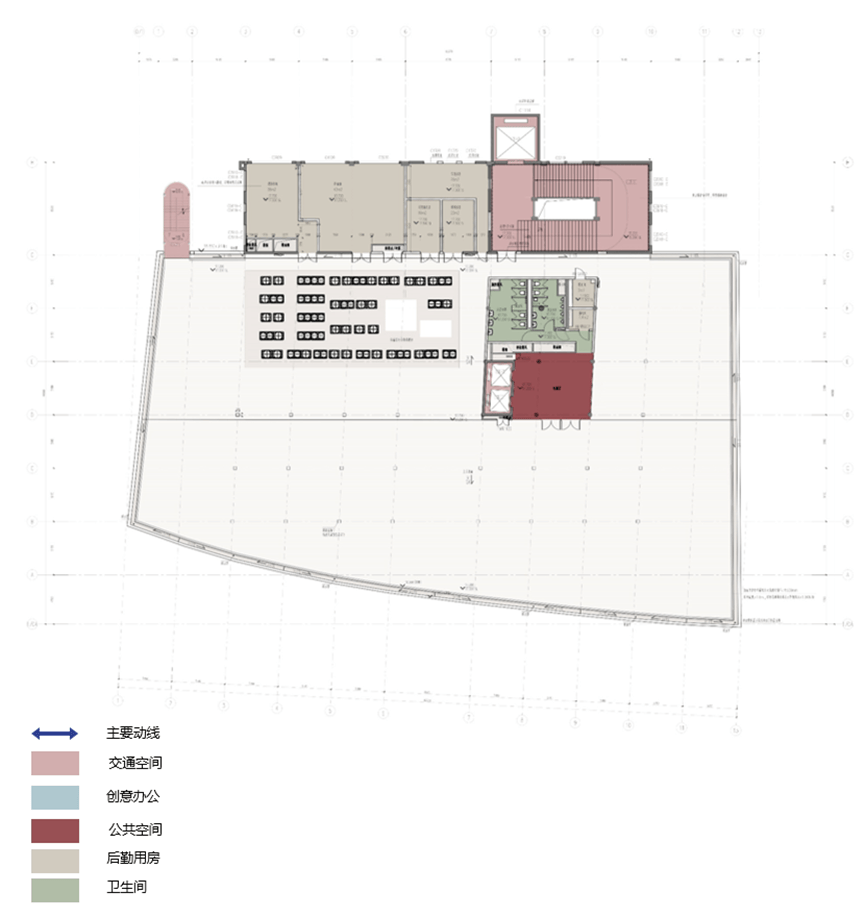 △ 标准办公层的设计动线,及办公共享空间的呈现效果