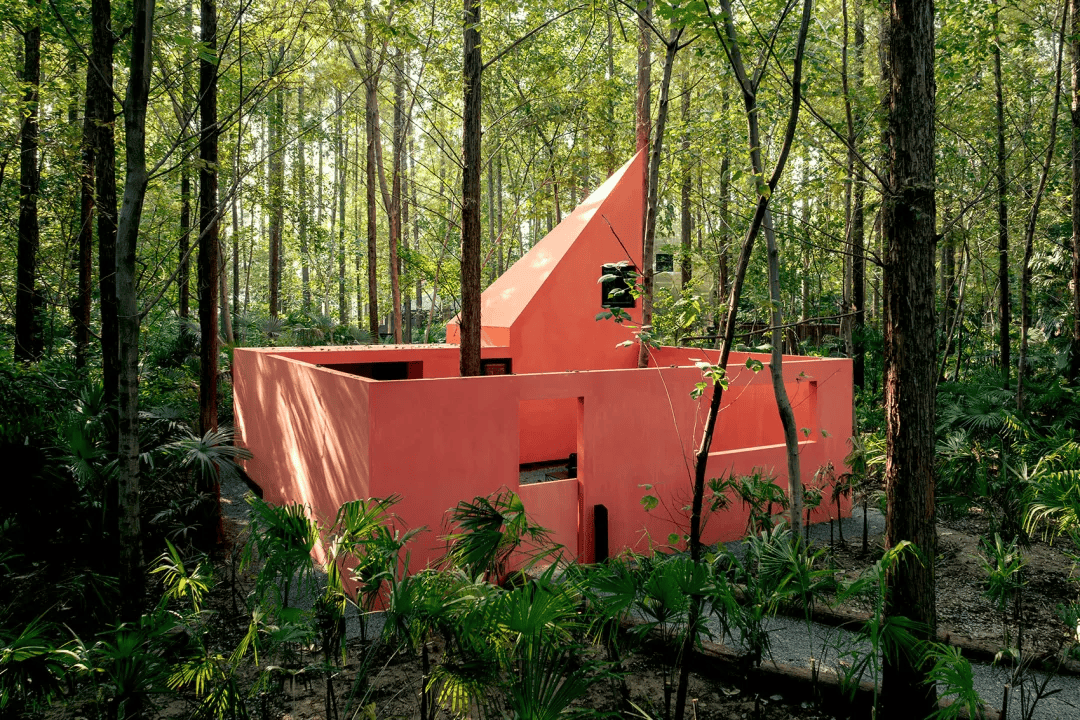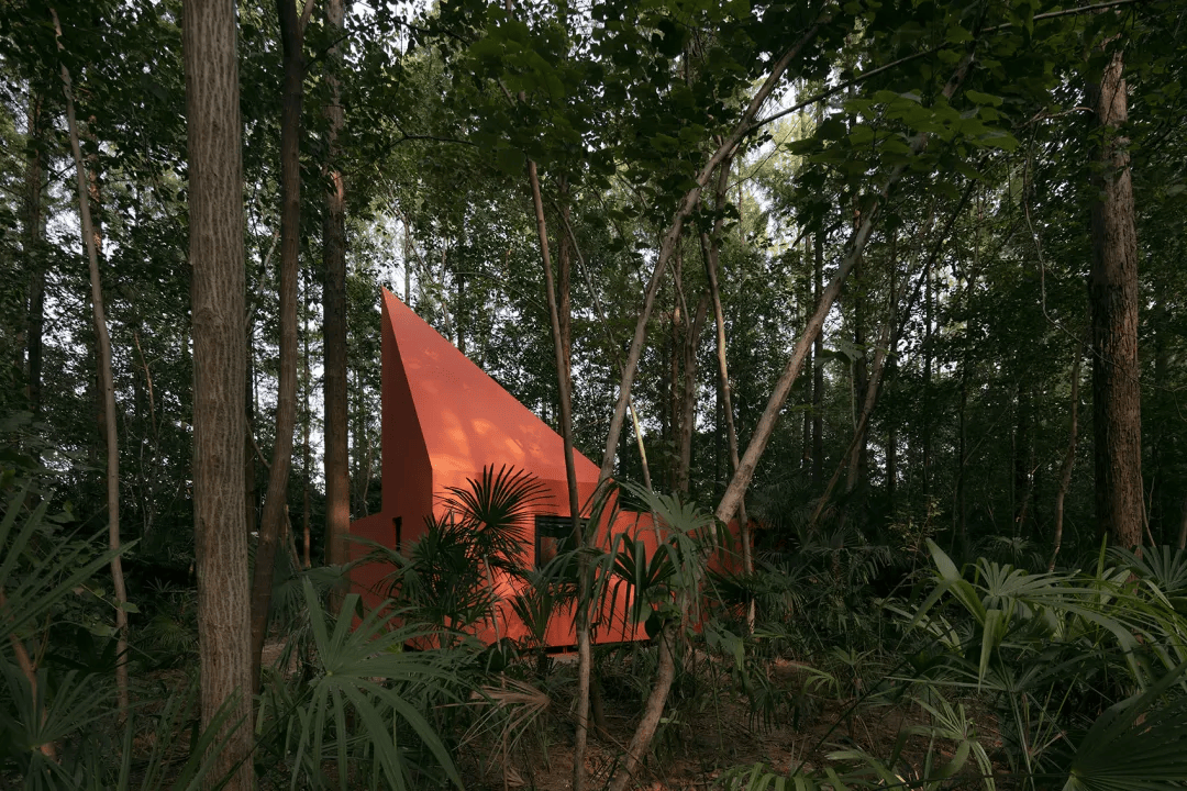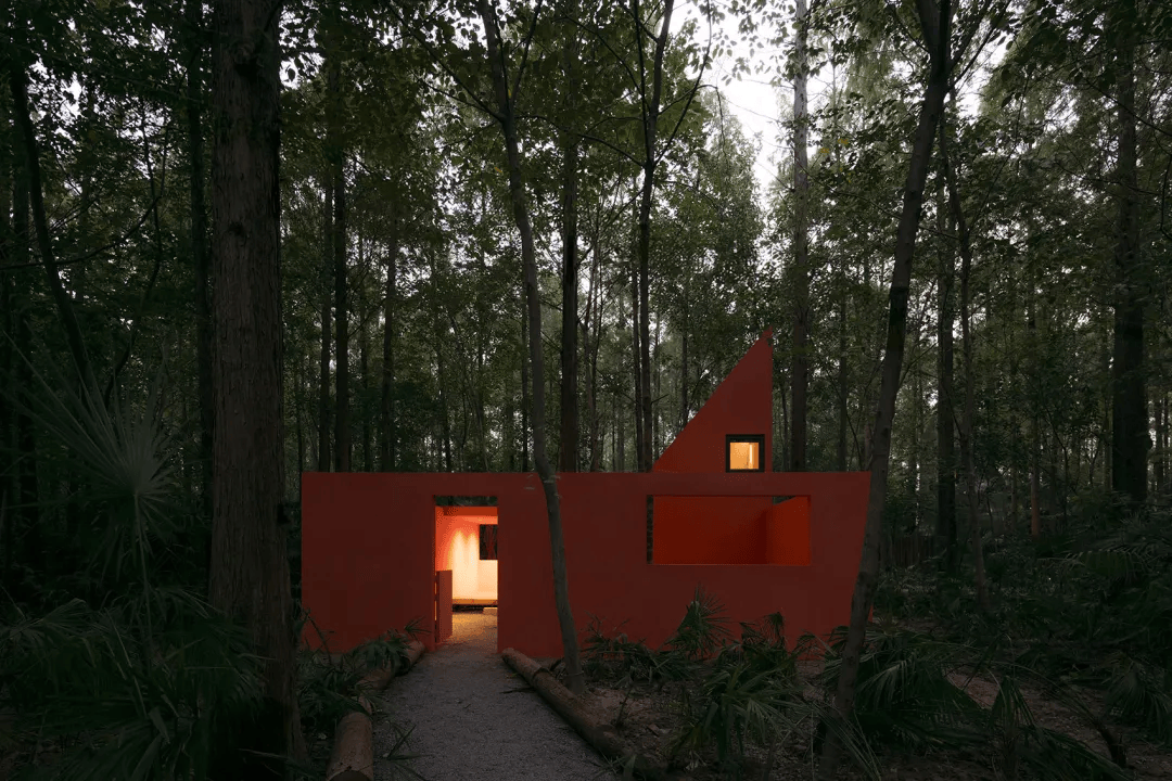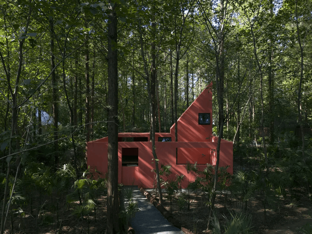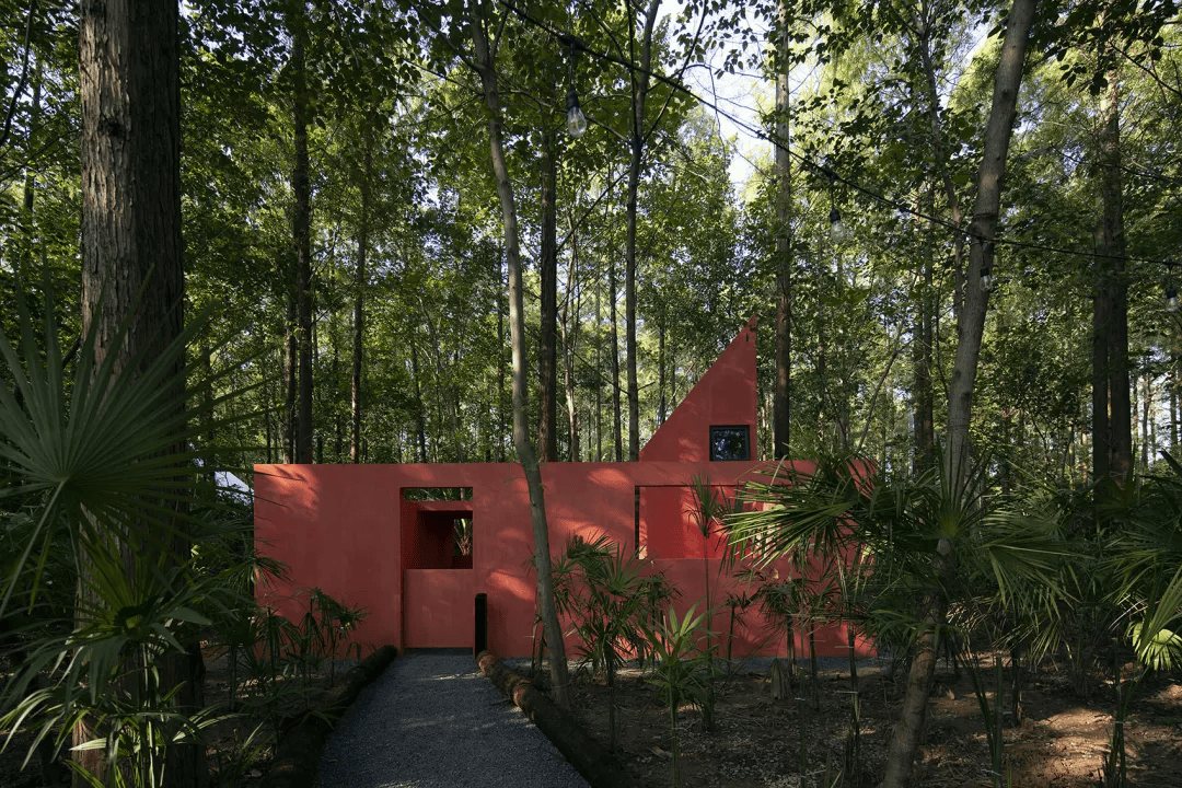 如果你愿意,可以在喜欢的任何地方惬意安居。探索荒野之家的无数种可能,一直是个个世界的愿望,朋友们的幻想带给了我们太多灵感,让每个回归自然的朋友都可以找到自己的故事。森林里也有舞蹈家,不介意把房子刷成红色,纯粹的、彻彻底底的红色。红色的空间仿佛是森林里的剧场,水杉树和棕榈树是舞台上的舞者,随风而动。舞蹈家说,荒野之家不妨纯粹和热烈一次,喜欢被远远的看见,也享受狂喜之后的静谧,只有自己知道。