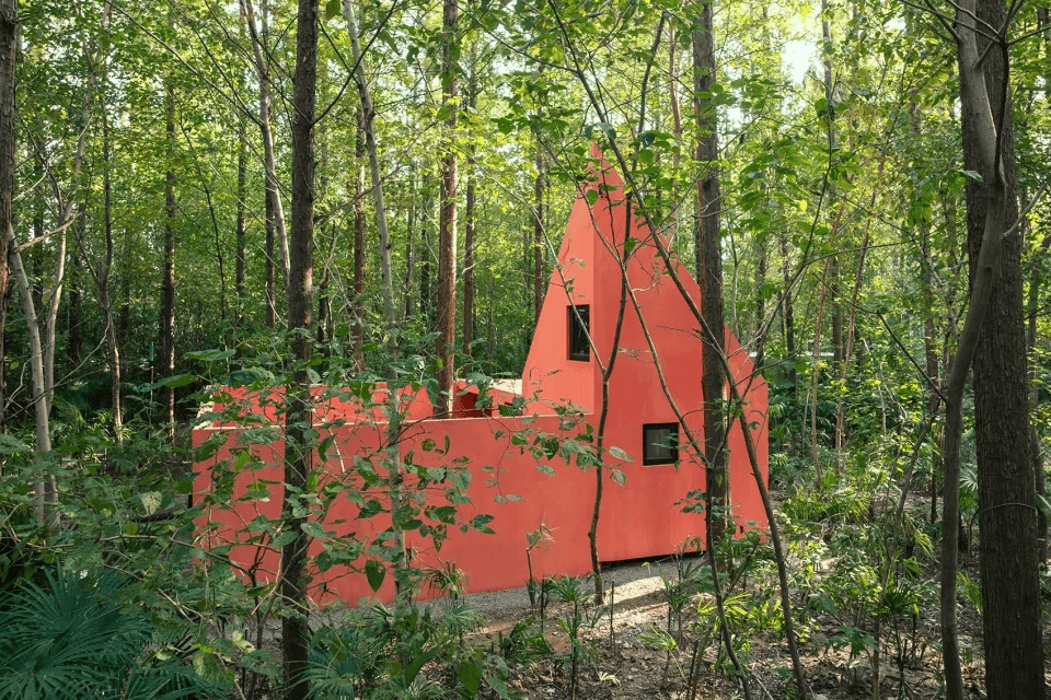 ▲森林中的红色容器© 存在建筑