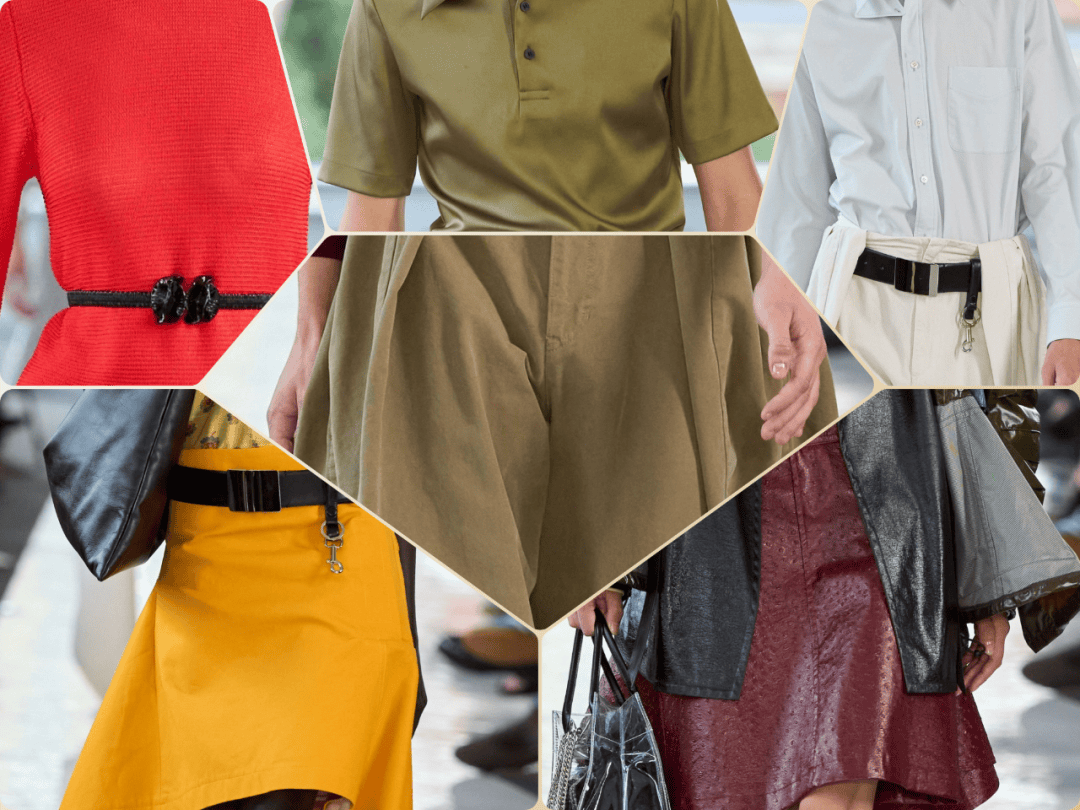 腰部设计:双腰带、腰封下移,增强视觉层次感