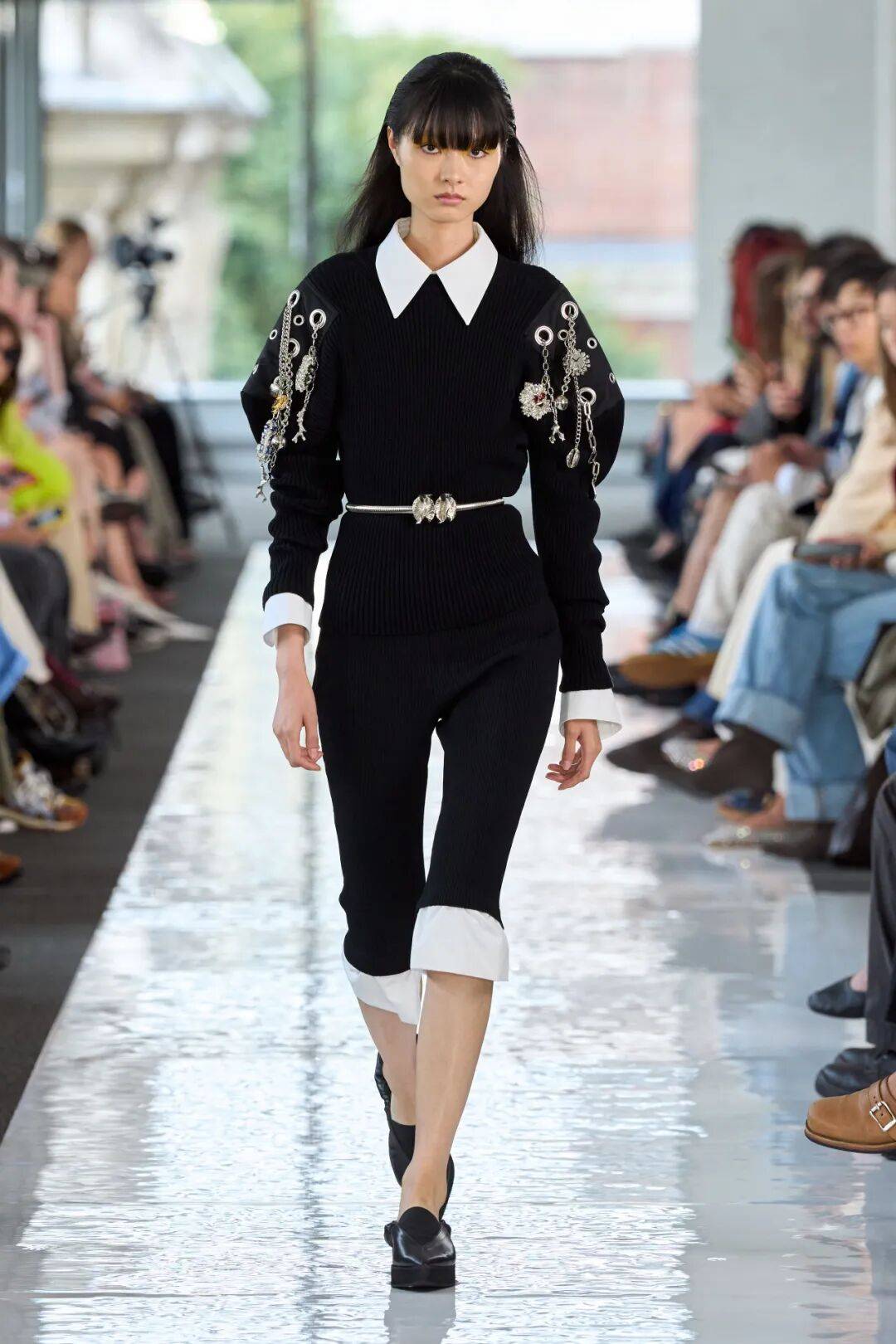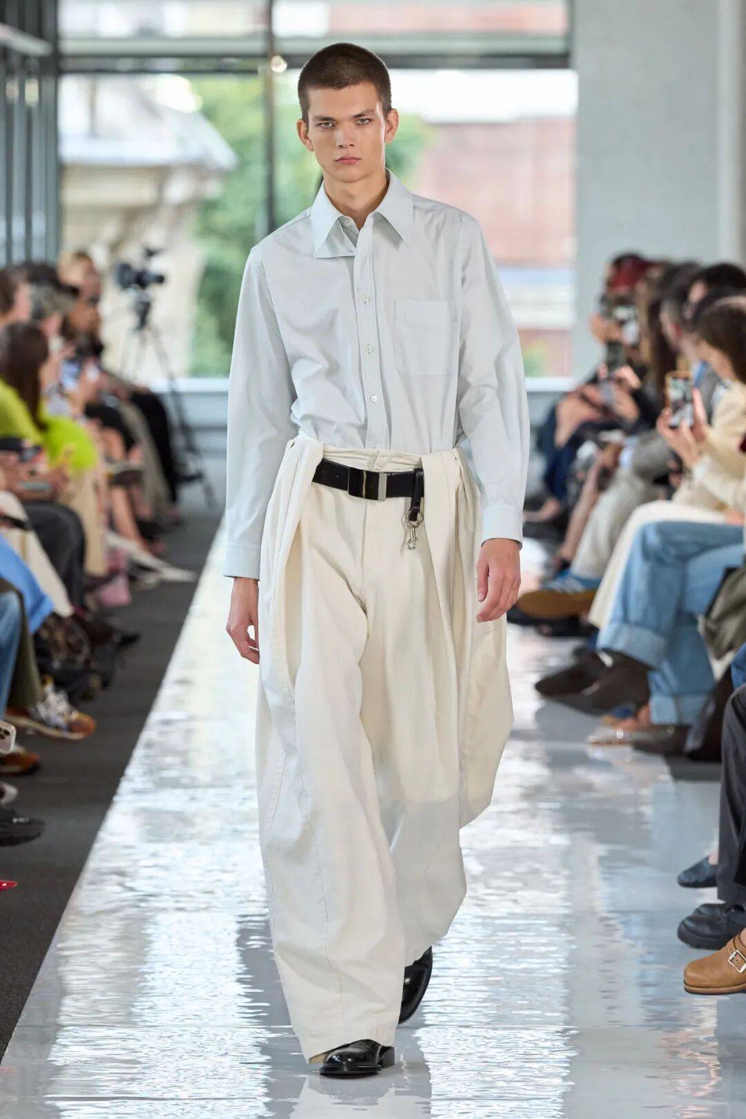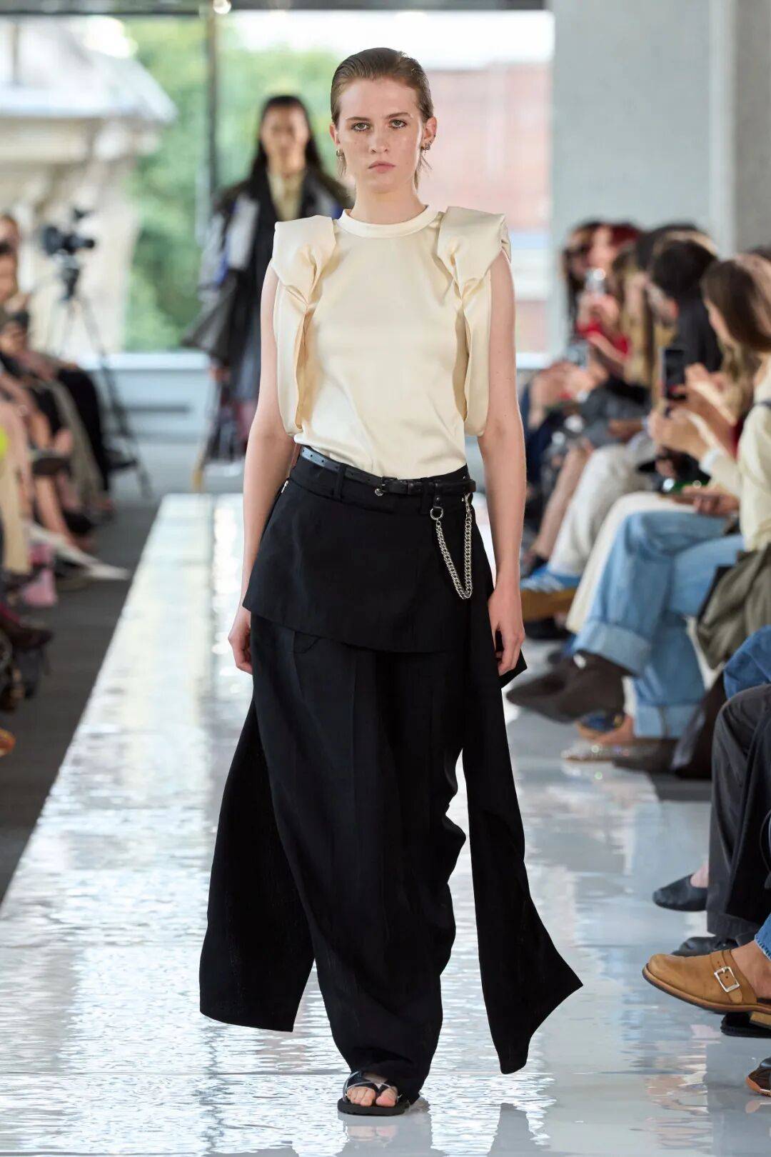《Vogue Scandinavia》:特别关注了腰部设计创新(双腰带、腰封下移),称其为"对传统女装结构的温柔颠覆,既保留了女性气质又增添了几分不羁"。