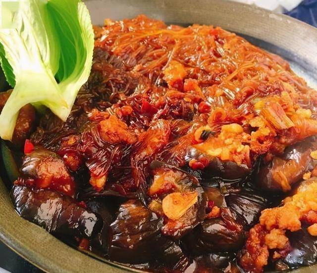1、把鸭掌治净后,放入川味卤水锅卤至软熟待用。另把茄子削皮并切成丁备用。