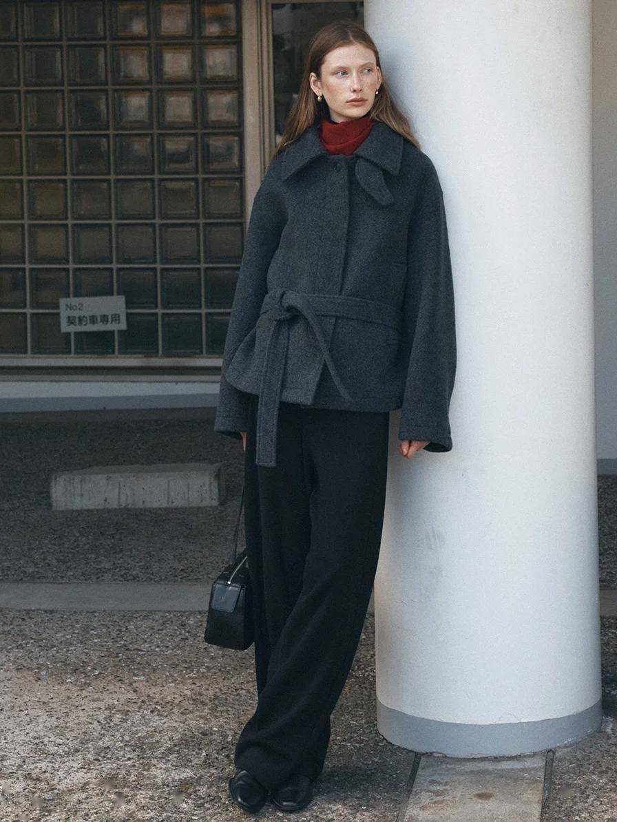 今年超火的高领飘带衬衫,是大衣的绝佳搭档。翩然飘动的丝带,为沉稳的大衣穿搭注入灵动气息,大衣负责保暖,飘带高领则将优雅贯彻到底。