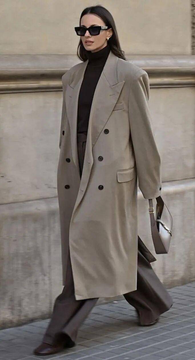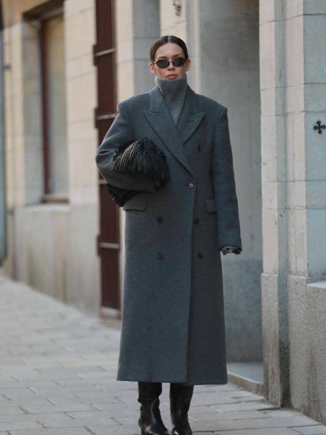 一、大衣 + 高领毛衣:年年穿都高级的冬日标配