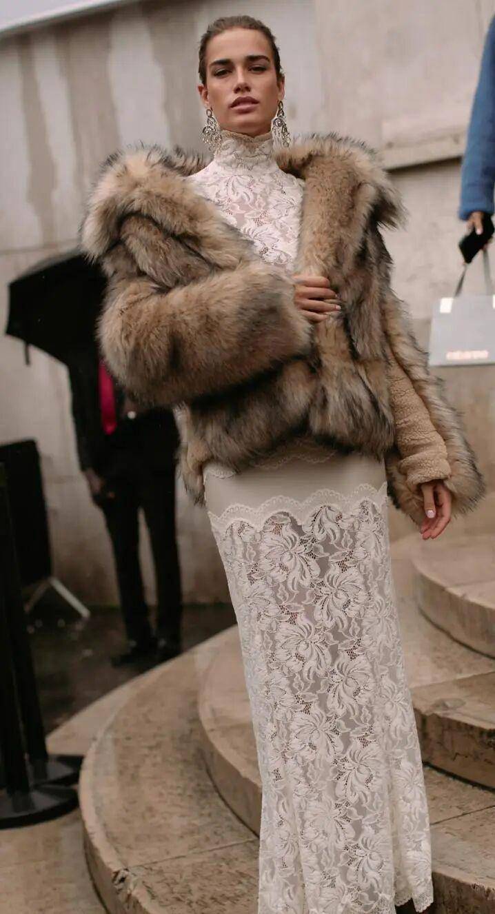 今年超火的蕾丝高领内搭,是皮草的 “神仙搭档”。透视蕾丝微露肌肤,与皮草的丰厚质感形成反差,知性优雅的女人味拉满,让人过目不忘。