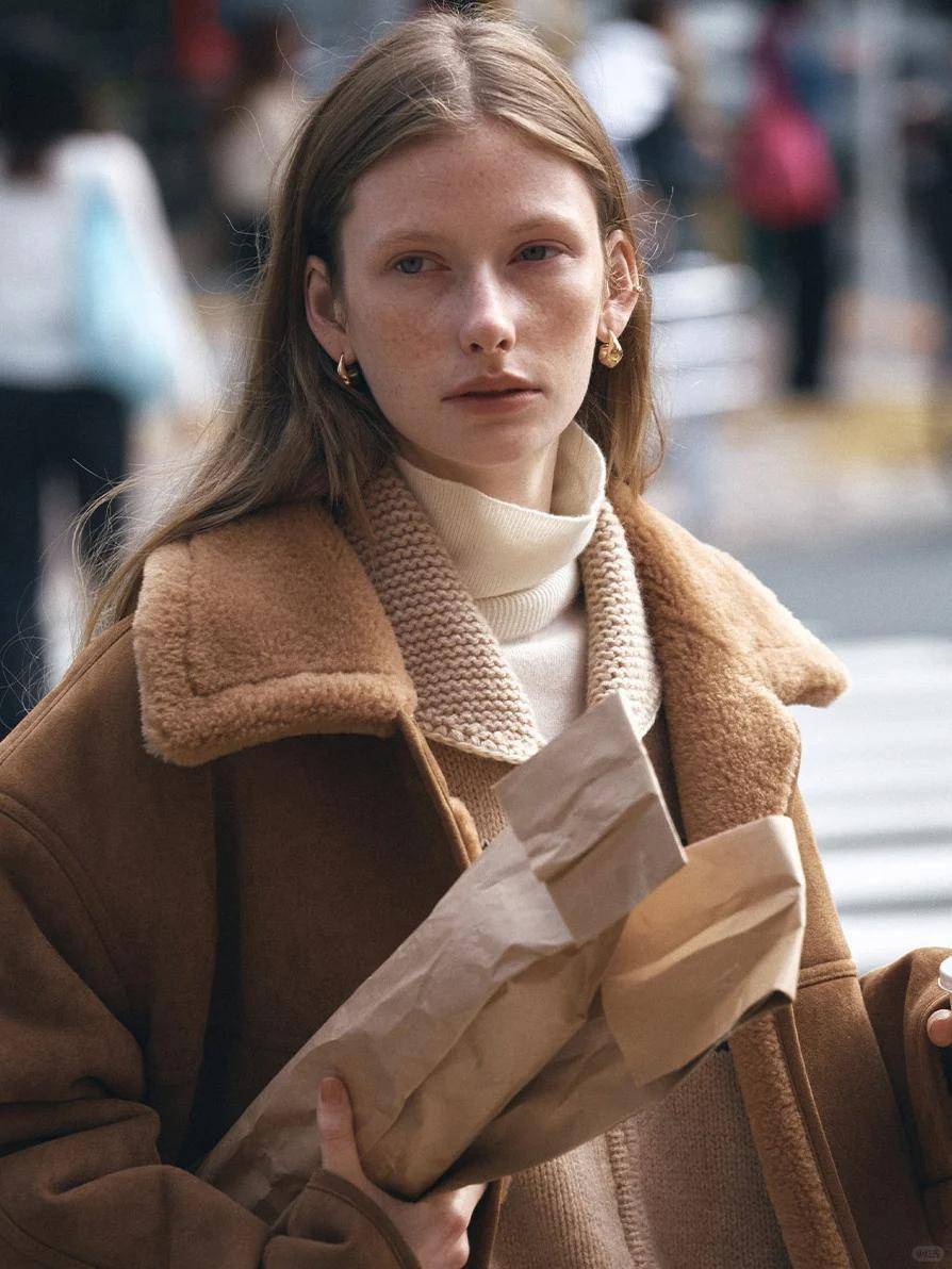 四、皮草外套 + 高领毛衣:贵气不臃肿的优雅秘诀