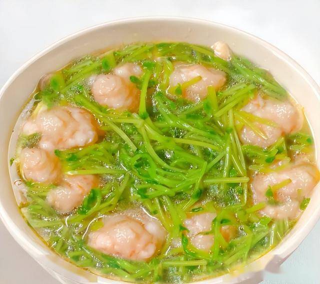4. 豆苗虾滑汤 —— 清肝明目,轻盈入眠