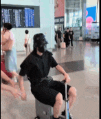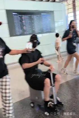 今年7月,他在机场就已经大战过私生了。当时他骑着一个行李箱在机场跑,有粉丝怼着他脸拍。