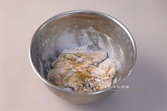 3. 倒入300g中筋面粉,筷子搅成絮状