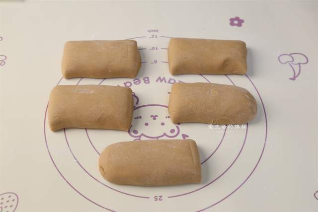 把面团揉5分钟左右排气完成,再搓成长条,分成5等份。