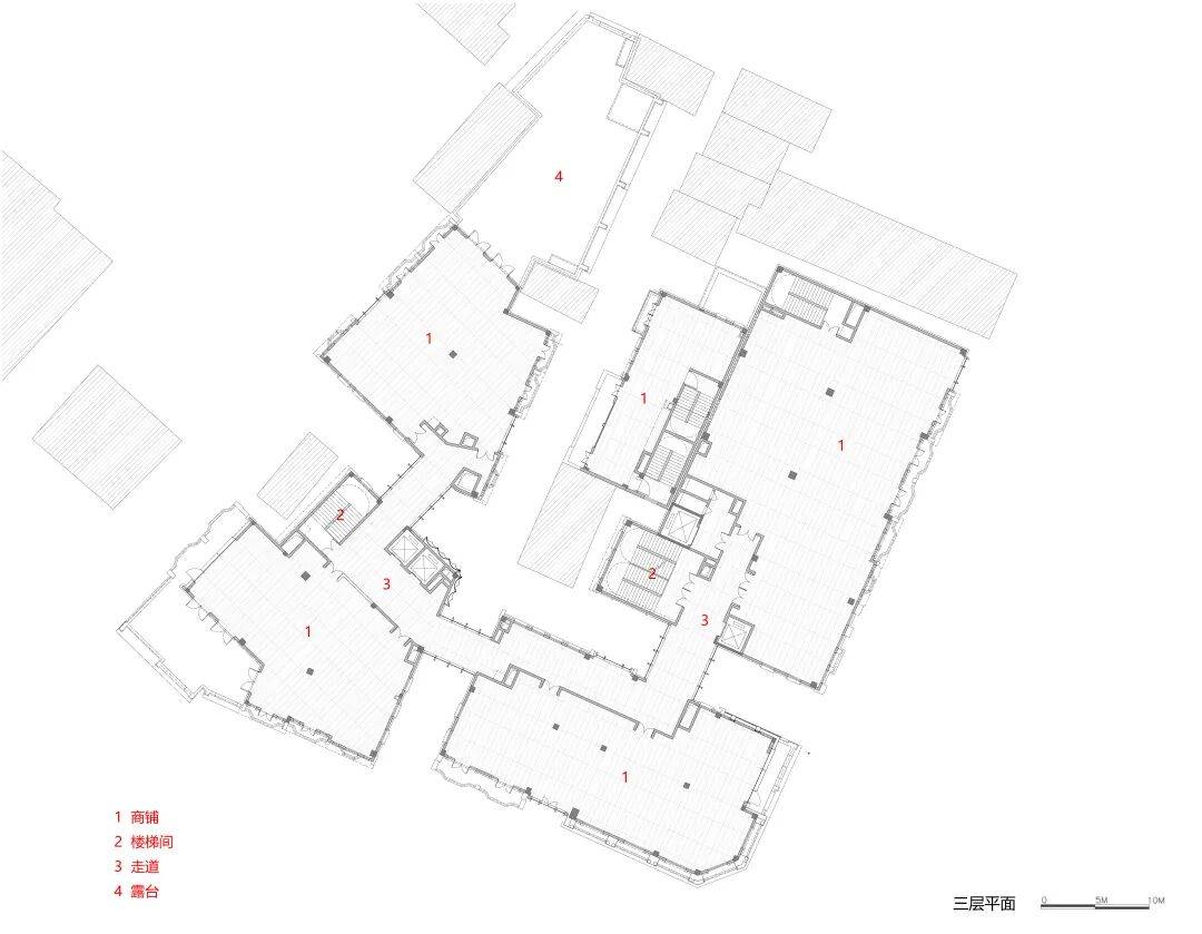 单元开间模数——4米与4.6米,既呼应传统竹筒屋的尺度特征,又契合现代商业空间的使用需求。4米开间对应8米柱网内一分二的布局方式,4.6米开间则采用对应柱网尺寸。两种模数搭配使用,在统一中寻求变化,创造出既传统又现代的街区景象。
