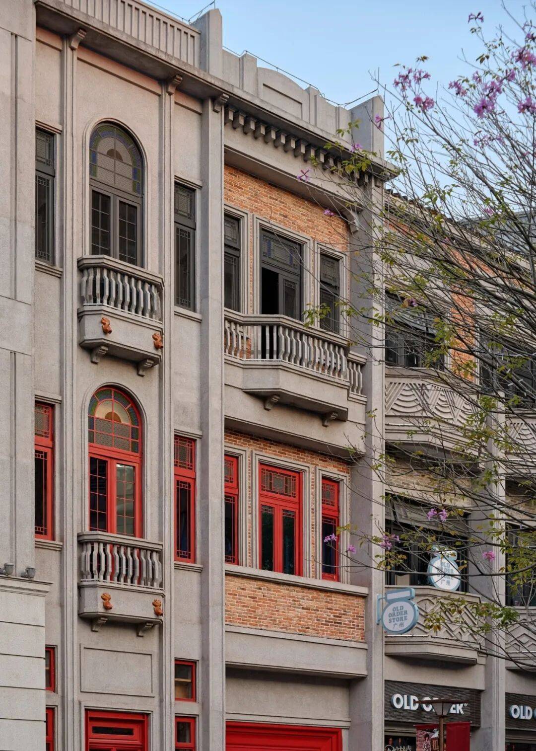 窗户设计采用现代手法再现满洲窗形式,不仅在视觉上延续传统意象,更在功能上满足现代采光和通风需求。立面细部融入灰塑工艺,这种国家级非物质文化遗产的运用,不仅增强了立面的艺术性,也促进了传统工艺的活态传承。