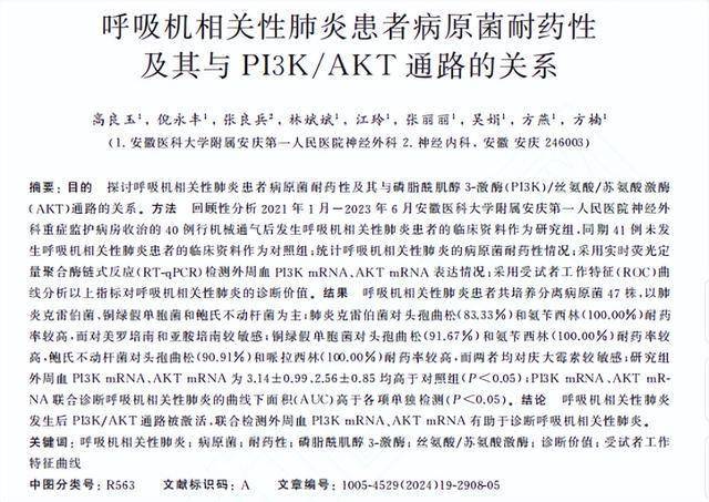高良玉.呼吸机相关性肺炎患者病原菌耐药性及其与PI3K/AKT通路的关系,中华医院感染学杂志,2024-08-06