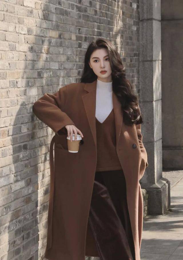 冬天流行“咖色大衣”,这样穿时髦高级,