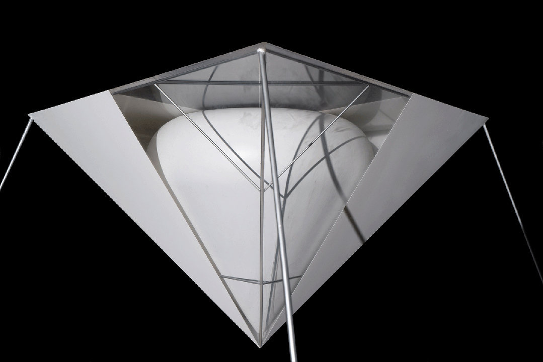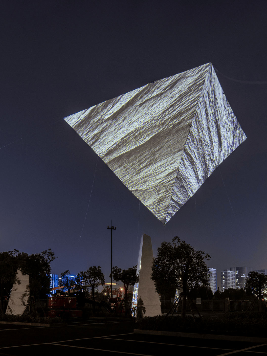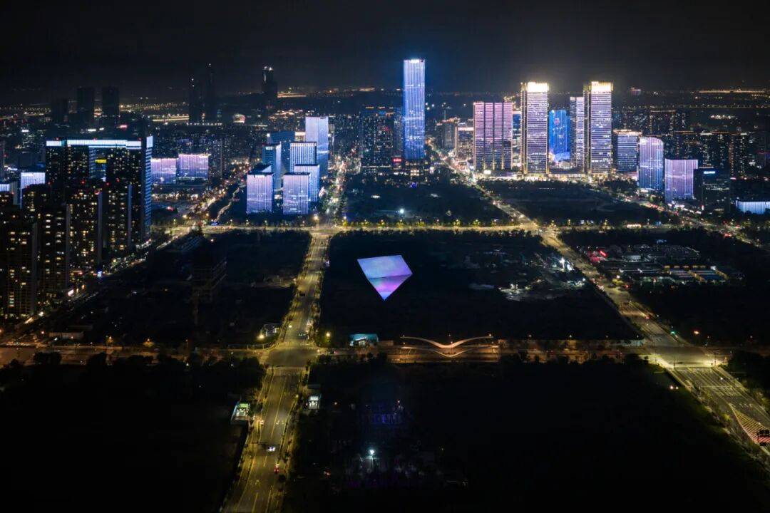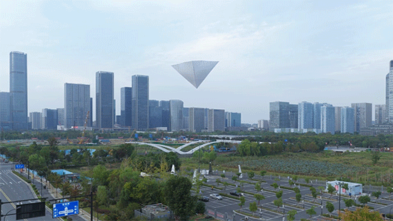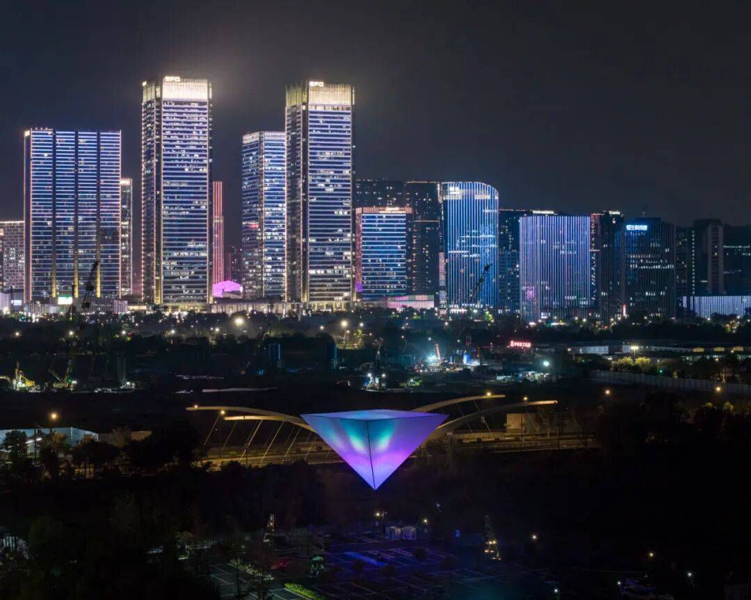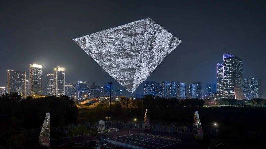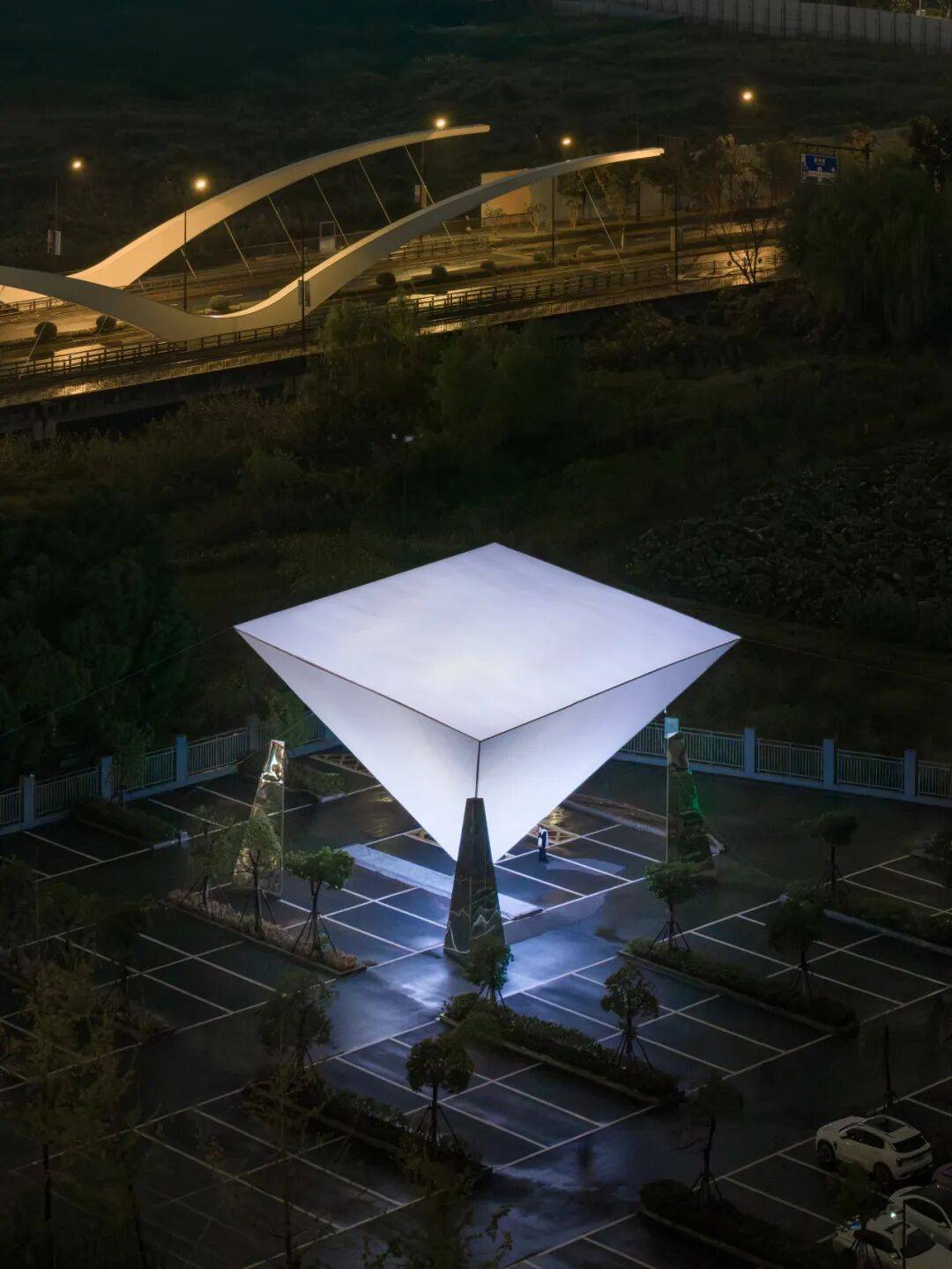 原型提取:源自余杭未来科技城LOGO中的“三角形”,演化为边长15米的倒置四棱锥。