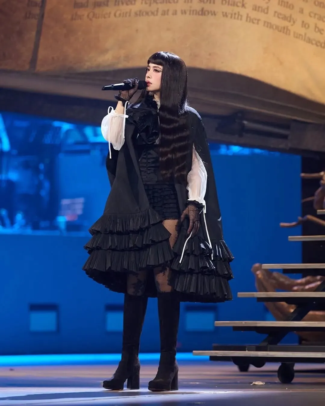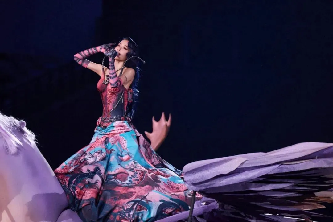 首次突破:蔡依林首穿运动鞋登台,搭配Dilara Findikoglu品牌的歌德式薄纱洋装,兼顾舞蹈强度与舒适度,被她笑称为“美梦成真”。