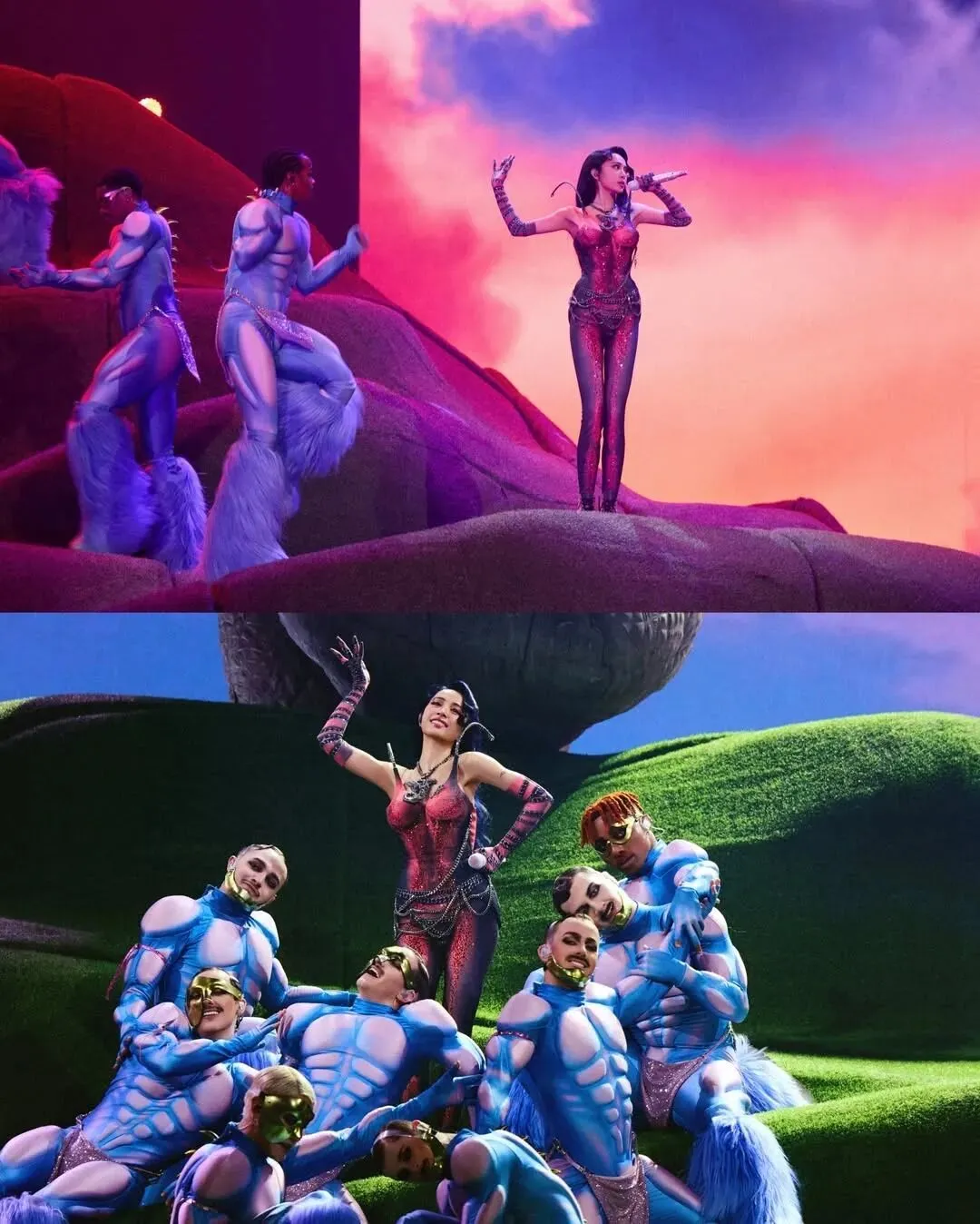 视听设备:1200只激光灯、480只音箱、8K LED地屏构建超现实艺术空间。前后台总计480人参与,包括36名舞者、24名乐手、120名工程人员,协同打造精密演出。