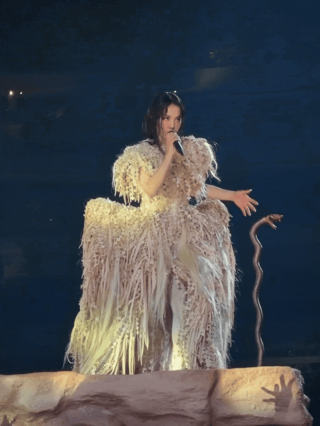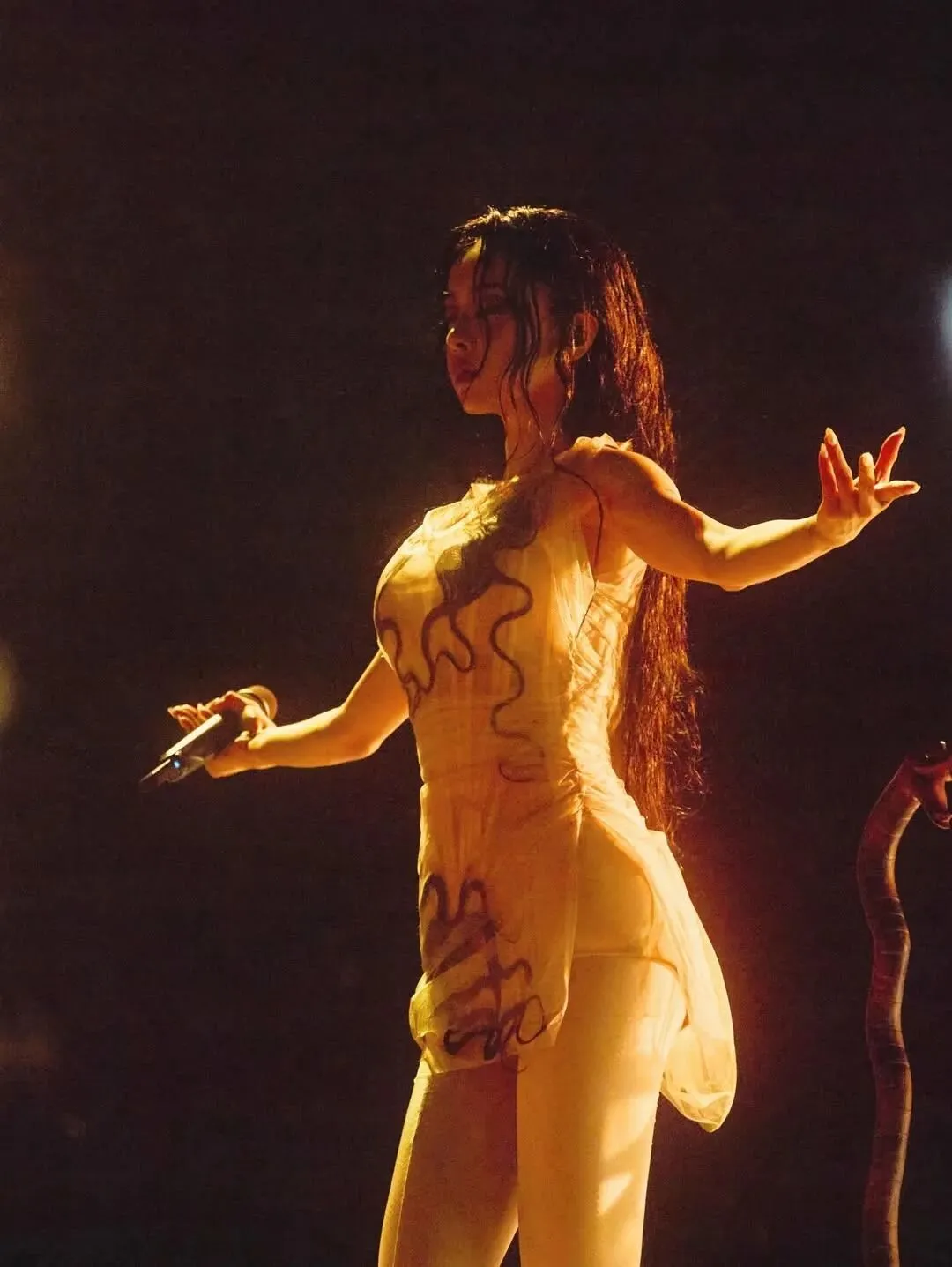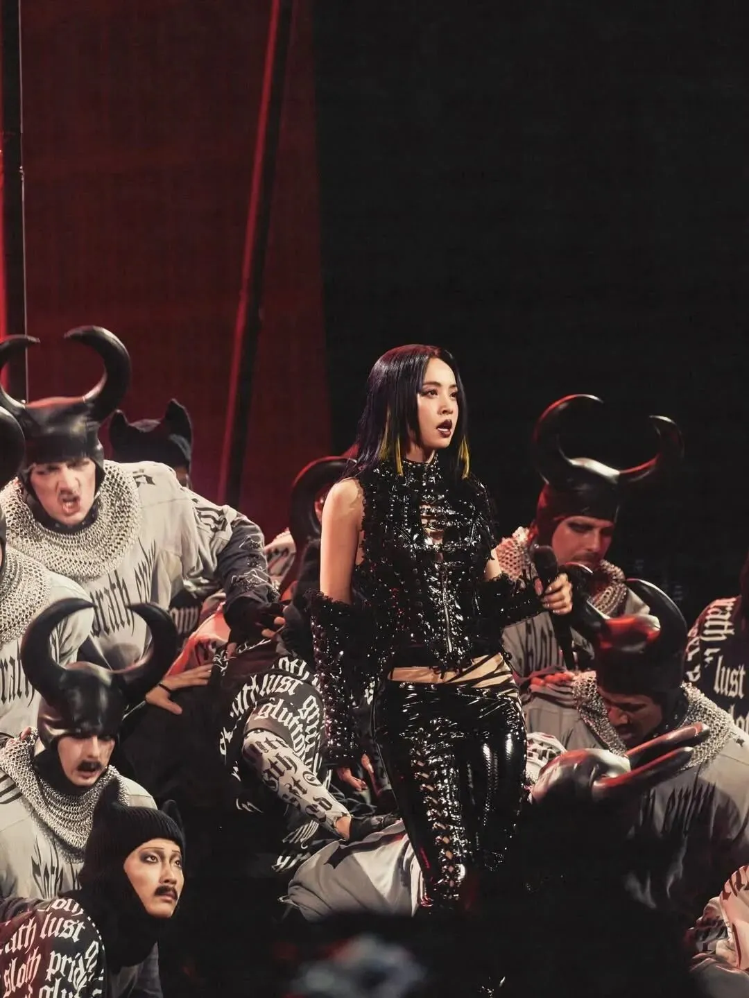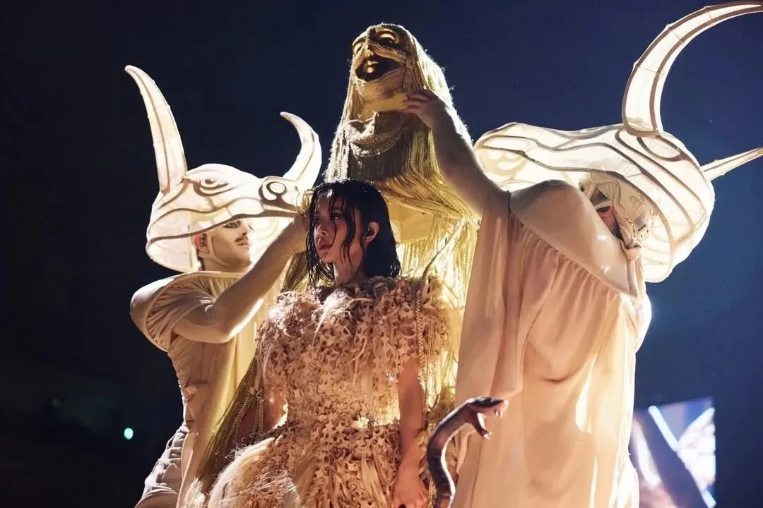 蔡依林的舞台向来不只为“好看”。此次巨蛇出场安排在《THE GIRL IN THE GARDEN》篇章,承接前段“公牛战车”的庆典氛围,转入暗黑神话语境,象征女性力量从欢庆走向觉醒。蛇作为美杜莎图腾,代表被污名化的性感与欲望,她的驾驭姿态正是对刻板印象的颠覆。正如她所说:“别人唱歌是流程,我是搞沉浸式戏剧。”