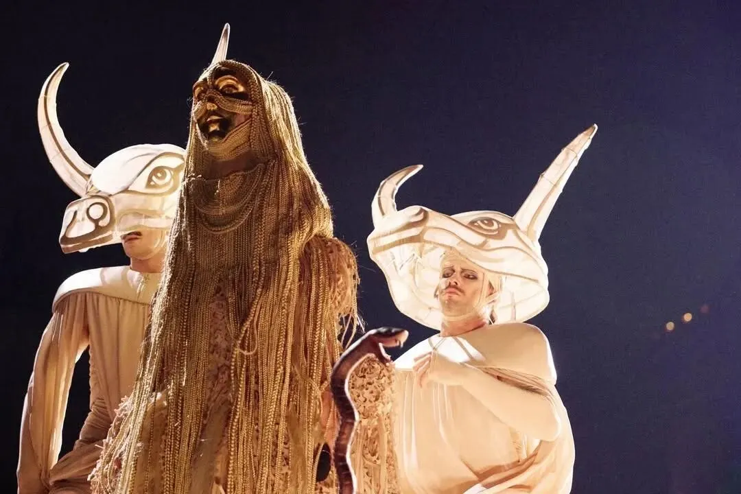 6. 愉悦乐园:终场金色战袍以蛇纹符号象征升华,七层楼高“愉悦之女”雕像升起,将气氛推向高潮。