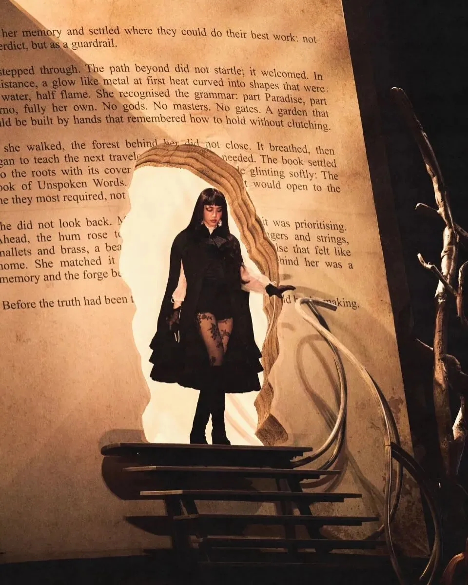 4. 真相之书:“金纱女伶”造型演唱抒情曲目,《第三人称》《天空》等组曲诉说爱情迷惘与成长。