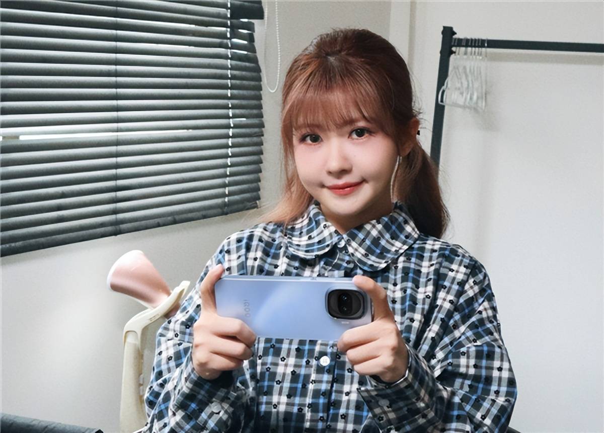 | 图片1 | 女生手持浅蓝色iQOO手机,后摄为“舷窗Deco”,双摄横向排列 | ✅ 外观设计特征被证实(舷窗Deco + 横向双摄) |