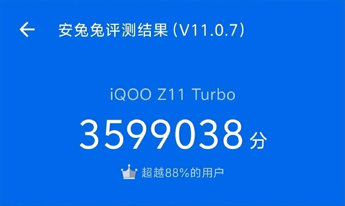 | 图片3 | 安兔兔评测截图:iQOO Z11 Turbo 跑分 3,599,038 分 | ✅ 性能数据支持“爆能打”说法,接近360万分 |