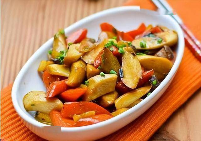 做法:1. 茄子和甜椒去皮,洗净,切成比筷子略厚的条状
