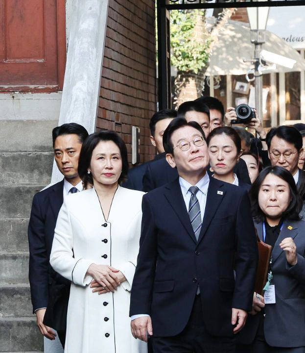 从京城的惊艳亮相到奔赴新程的素衣风华,她的每一套造型都藏着审美巧思,更映照着与李在明数十载相濡以沫的深情。