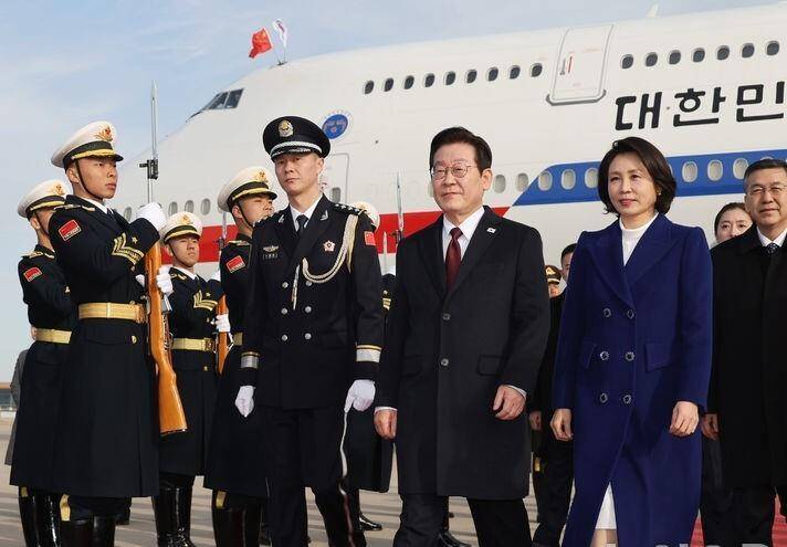 金惠景从钢琴教师到第一夫人的转变,也暗合了李在明从草根到总统的逆袭之路。她曾在综艺节目里和李在明穿红配绿的情侣装,隔着屏幕都能感受到两人的默契。这次访华途中,她挽着丈夫胳膊走下飞机的画面,被网友称为“自然撒糖”。