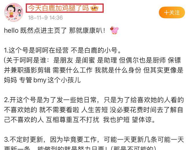 开宣传号“今天白鹿加鸡腿了吗”,记录白鹿日常,产出大量神图;