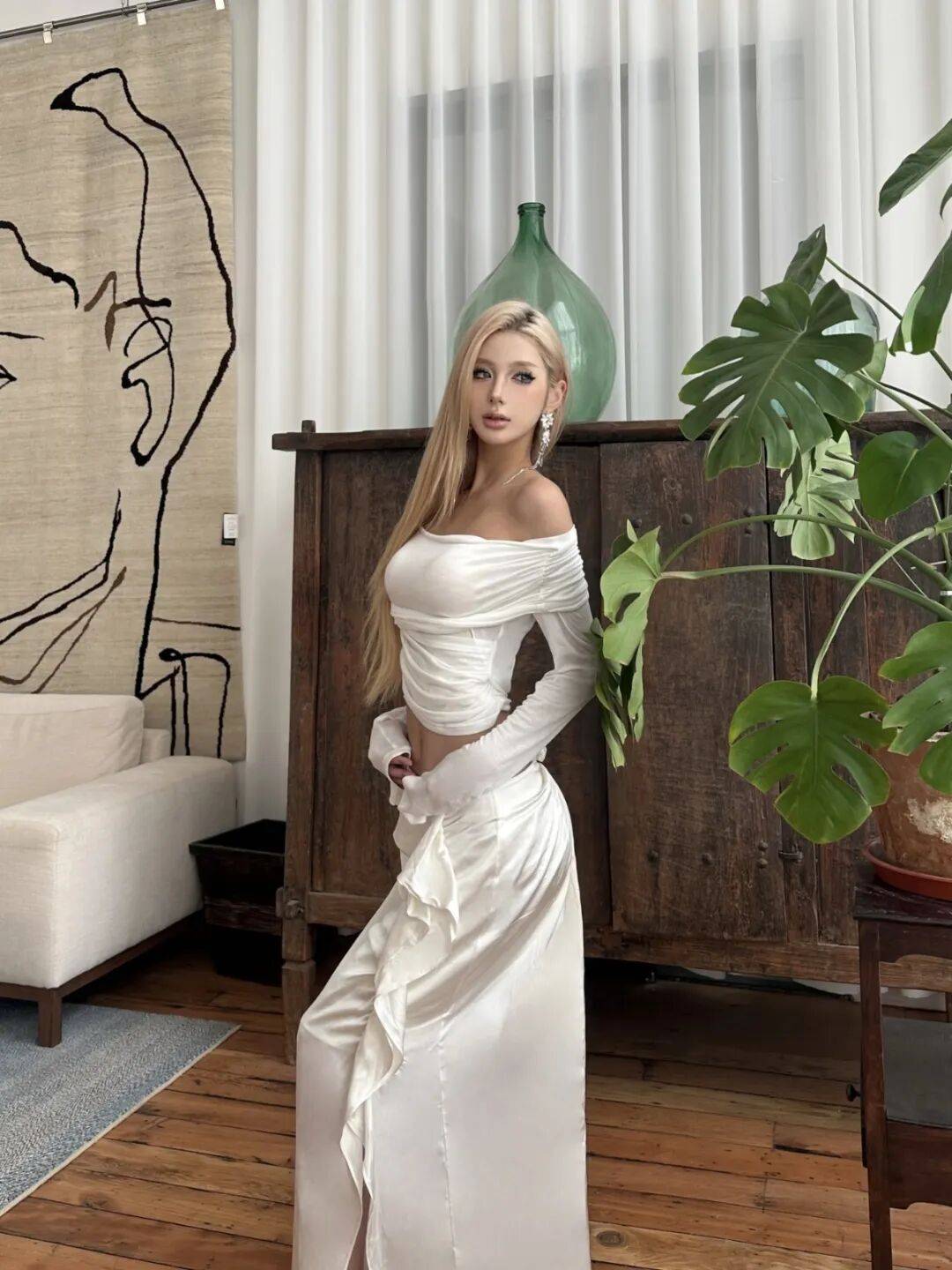 恶女的色彩也可以选择清冷的白色,比如象牙白、米白、带灰调的牡蛎白——一种看起来像被时间熏染过,或是在暗处微微发光的白。这种白色自带故事感与疏离感,像月光一样皎洁也冰冷。