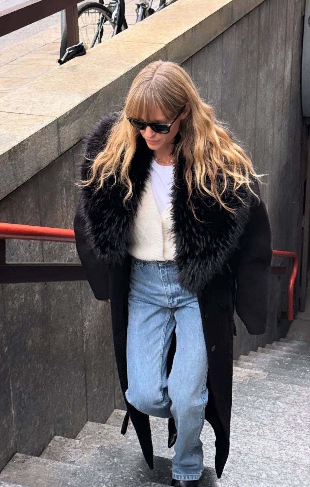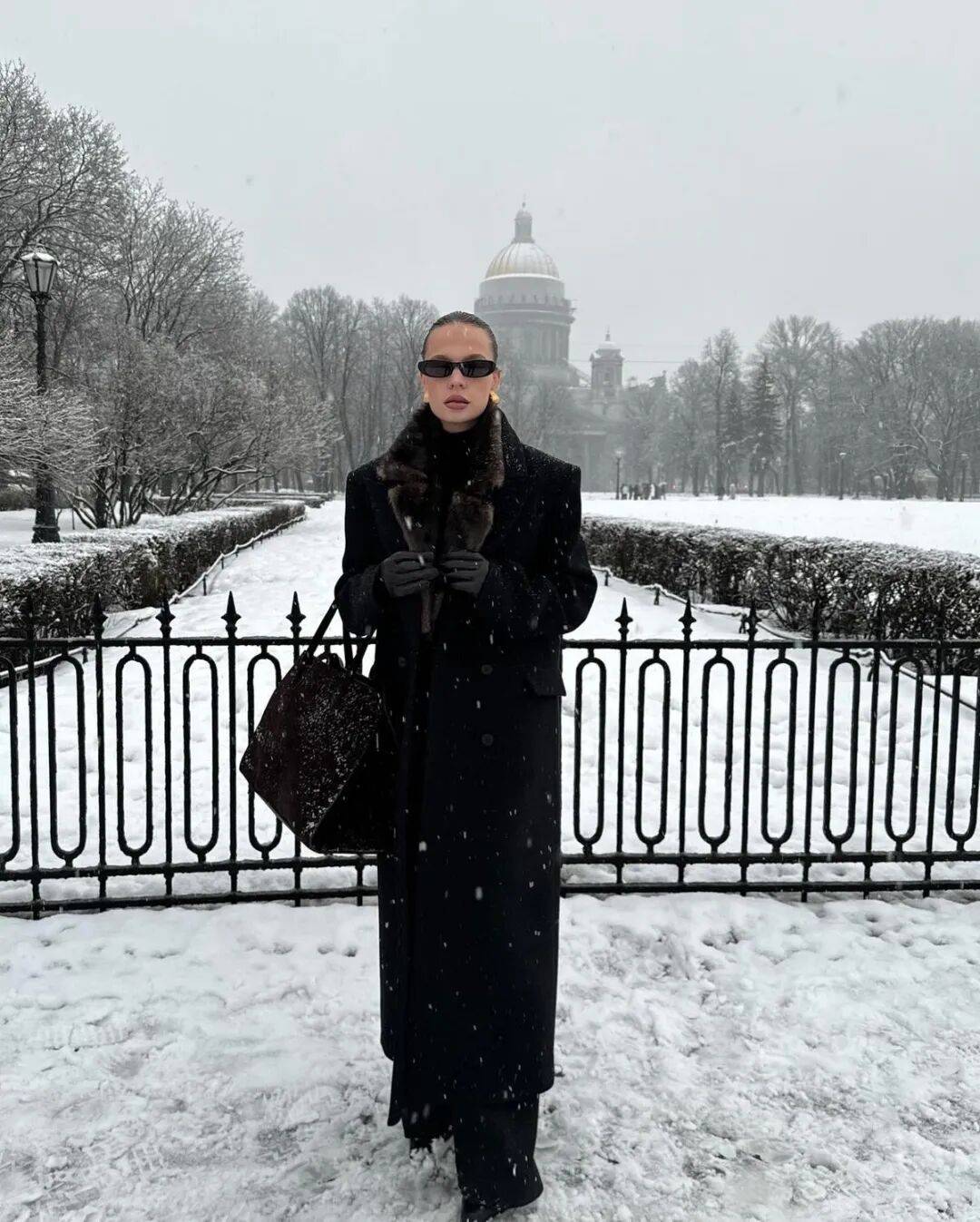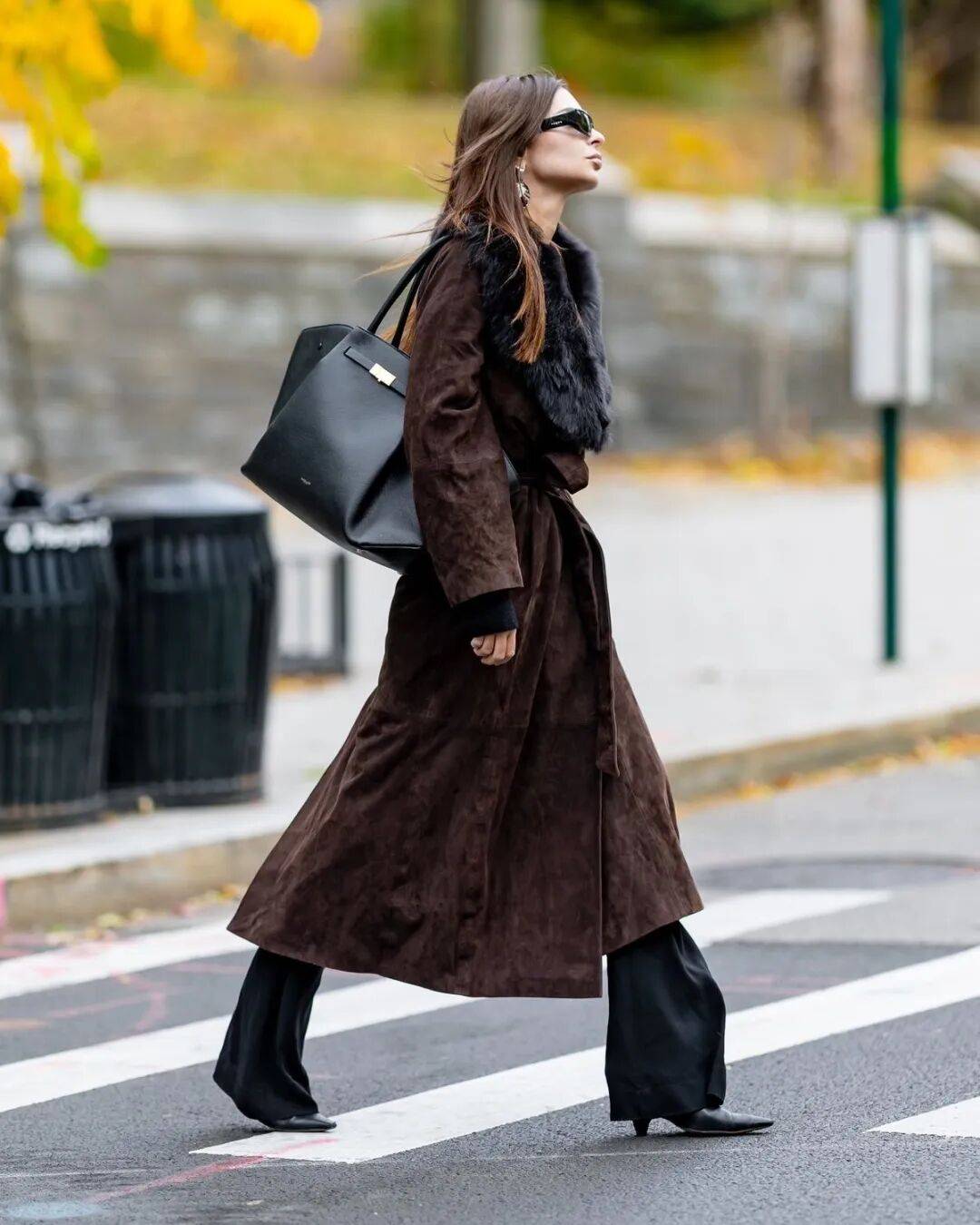 行走间,毛绒随步伐微微颤动,光泽流转,让整体造型在低调与贵气间取得了完美平衡,将上世纪中叶的优雅风华,悄然带入当下街头。