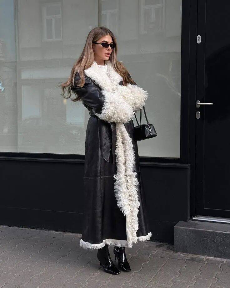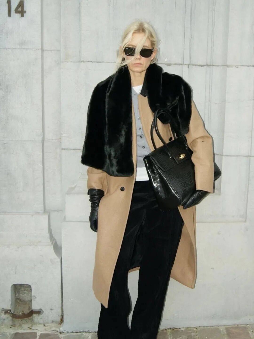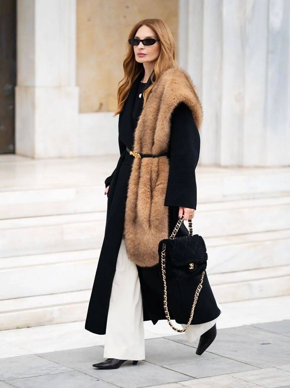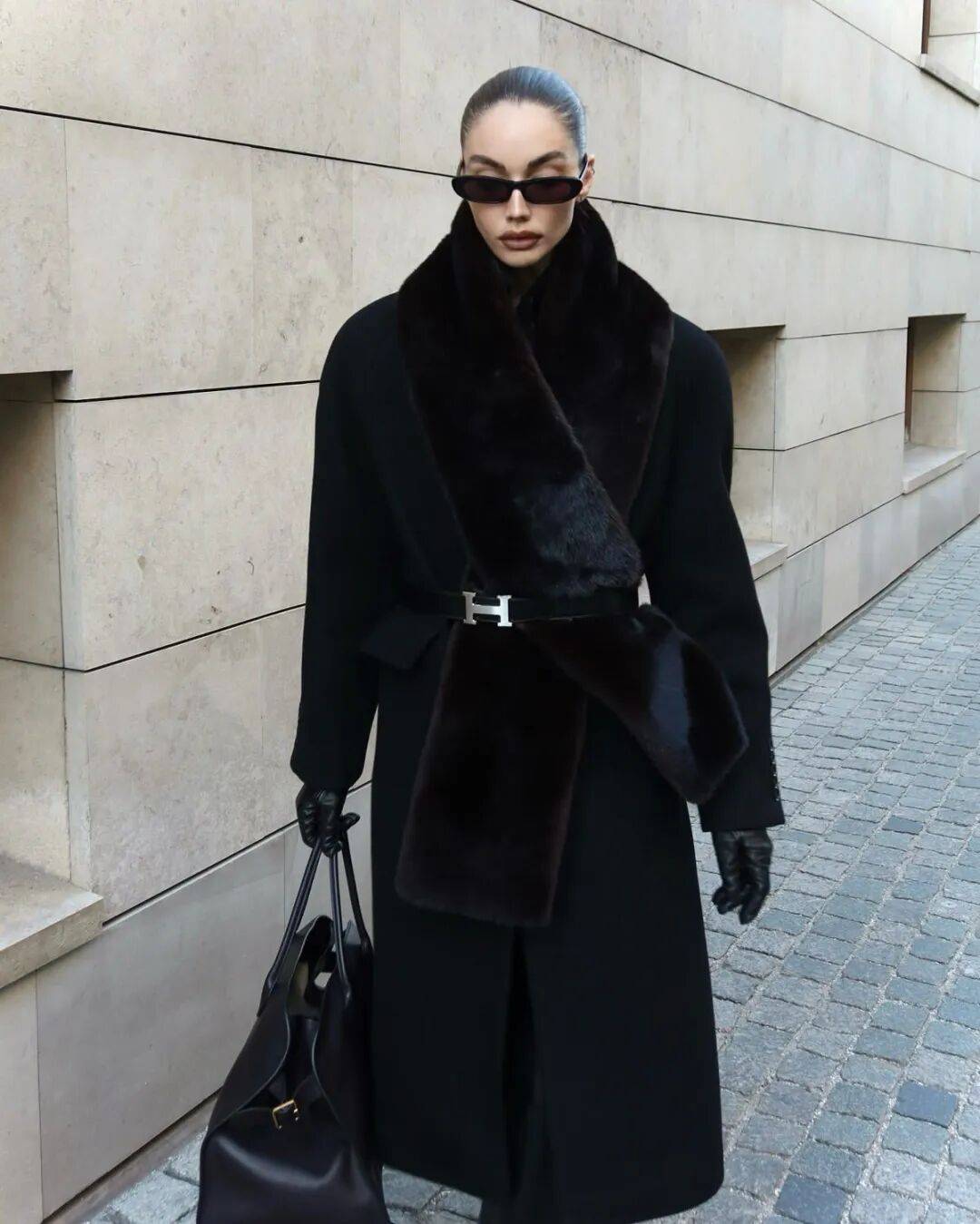 一条足够丰盈宽大的皮草围巾,可以与任何一款经典大衣的叠穿。