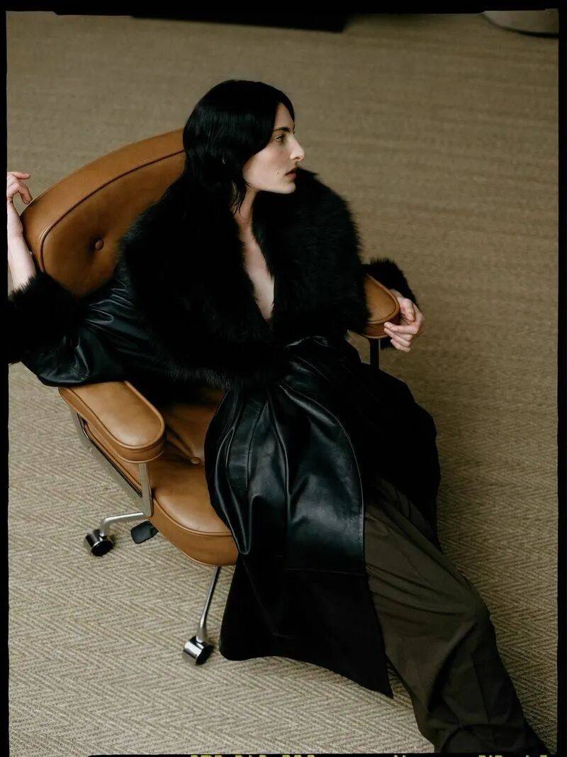 两种截然不同的材质碰撞出丰富的层次,皮革是轮廓,皮毛是温度;皮革是英气,皮毛是慵懒。