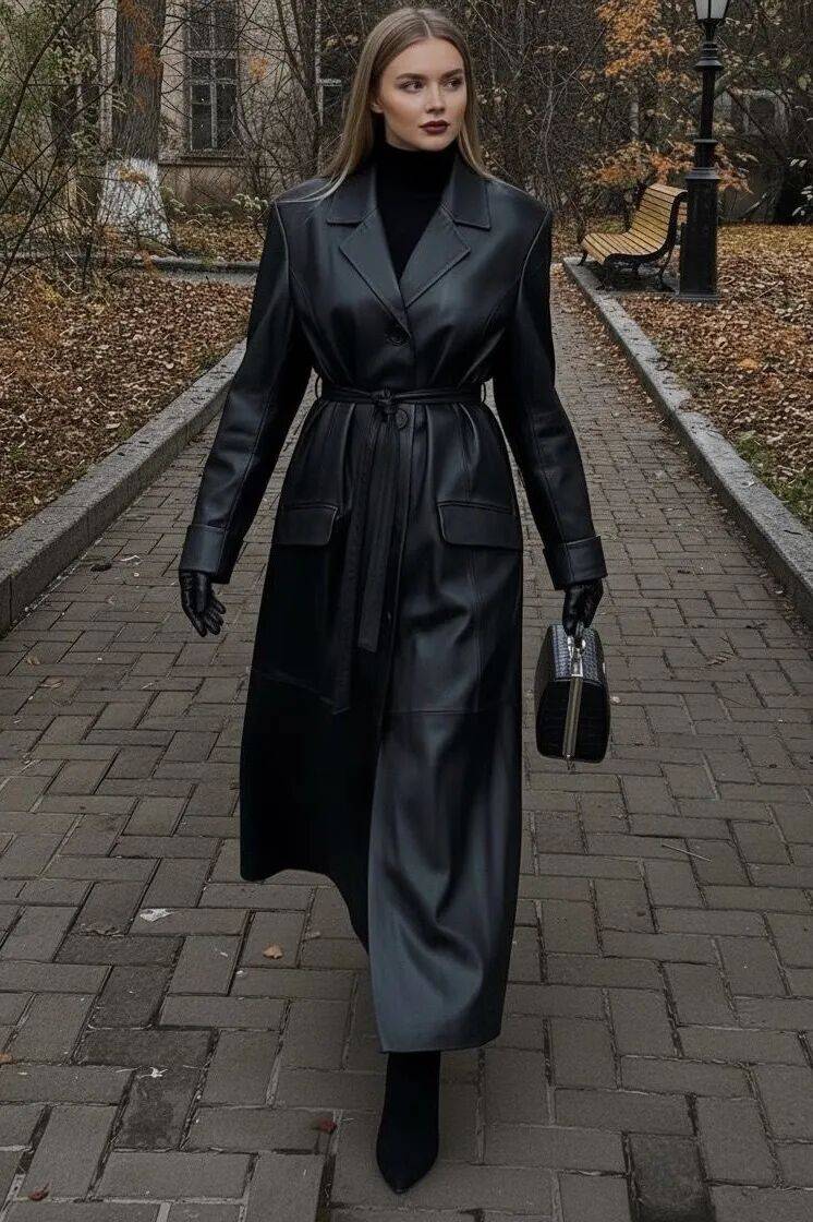 也可以松散地披挂,用一条腰带在侧边或腰部固定,形成不对称的慵懒之美,宛如穿着一件设计感的皮毛一体。